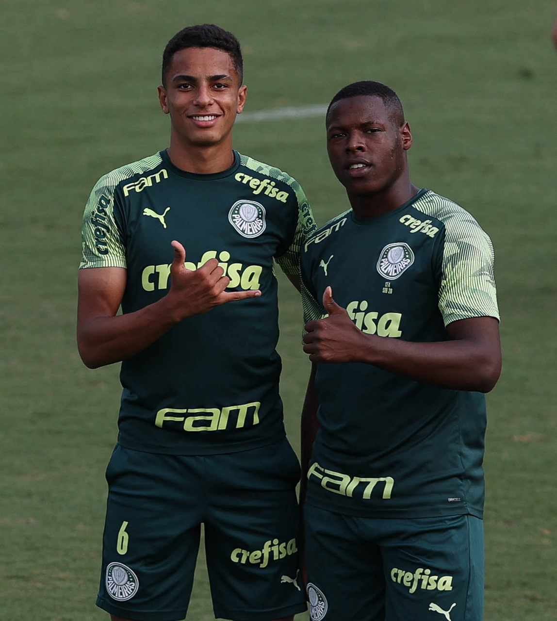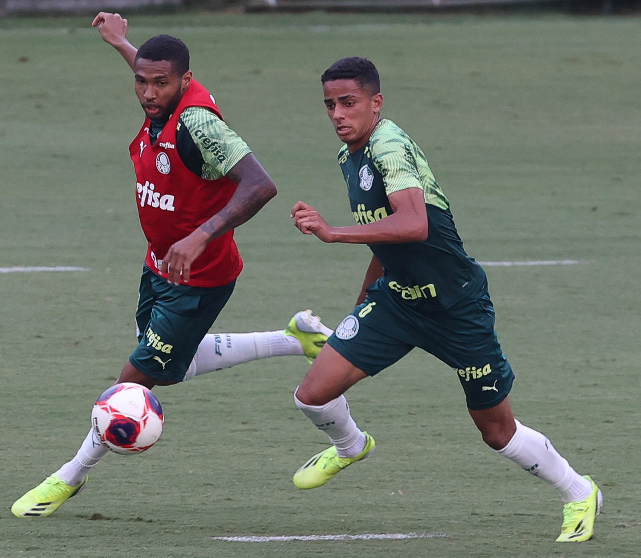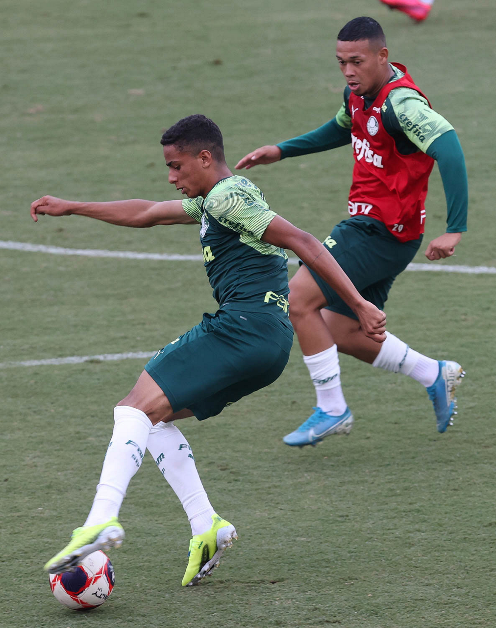 Os jogadores Gabriel Silva e Renan (D), da SE Palmeiras, durante treinamento, na Academia de Futebol. (Foto: Cesar Greco)