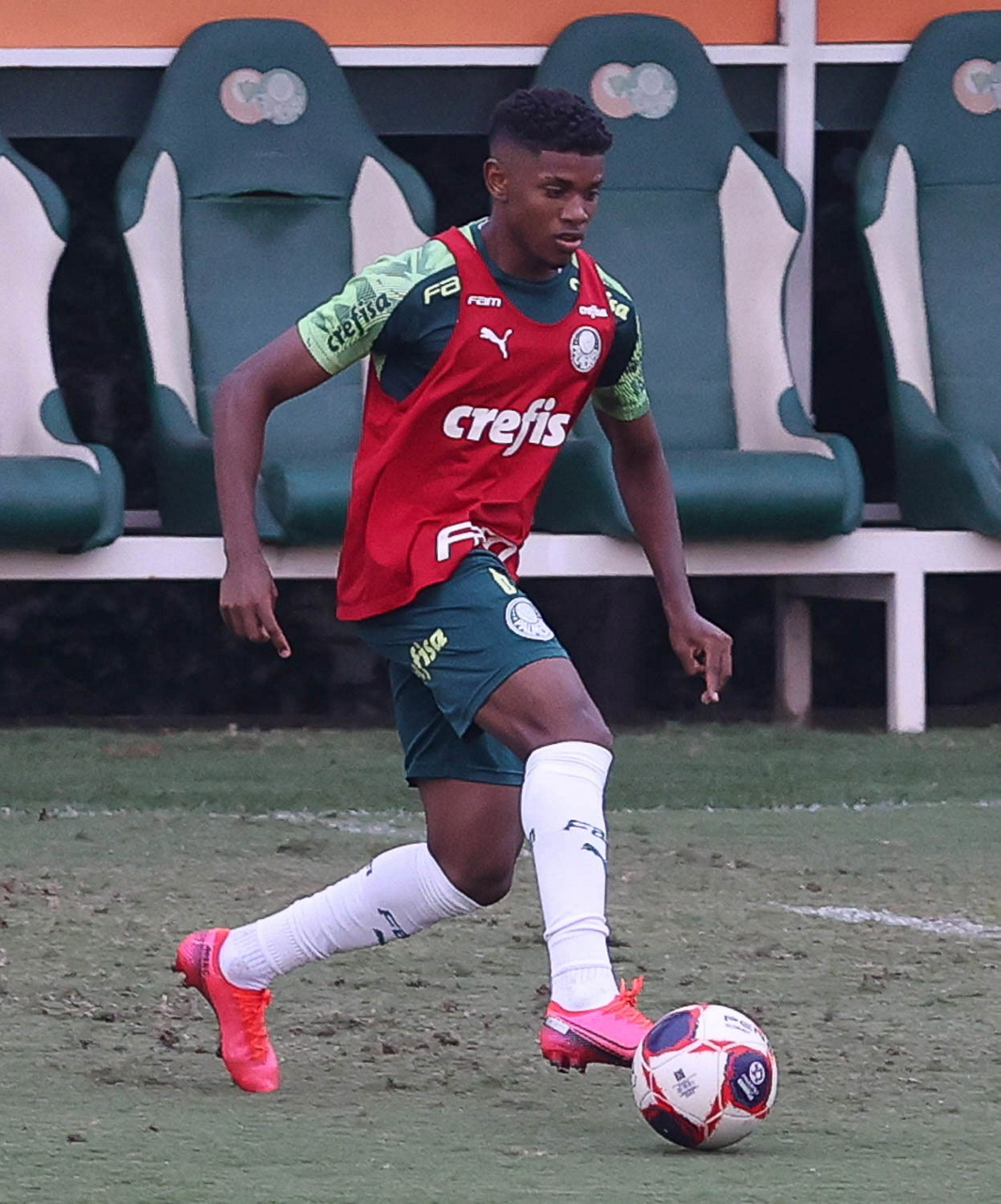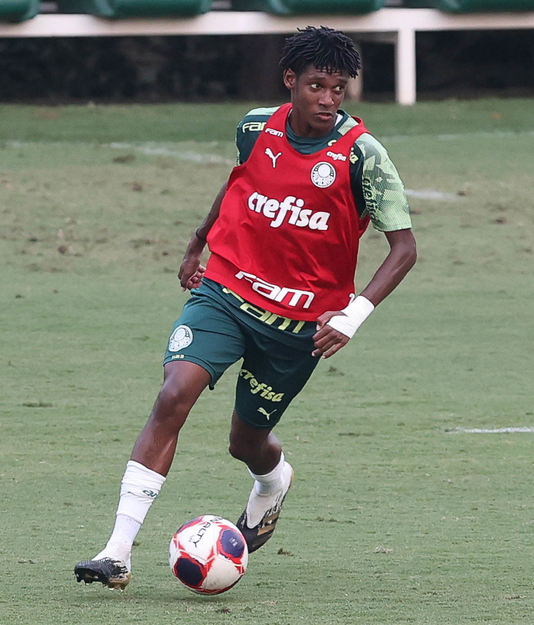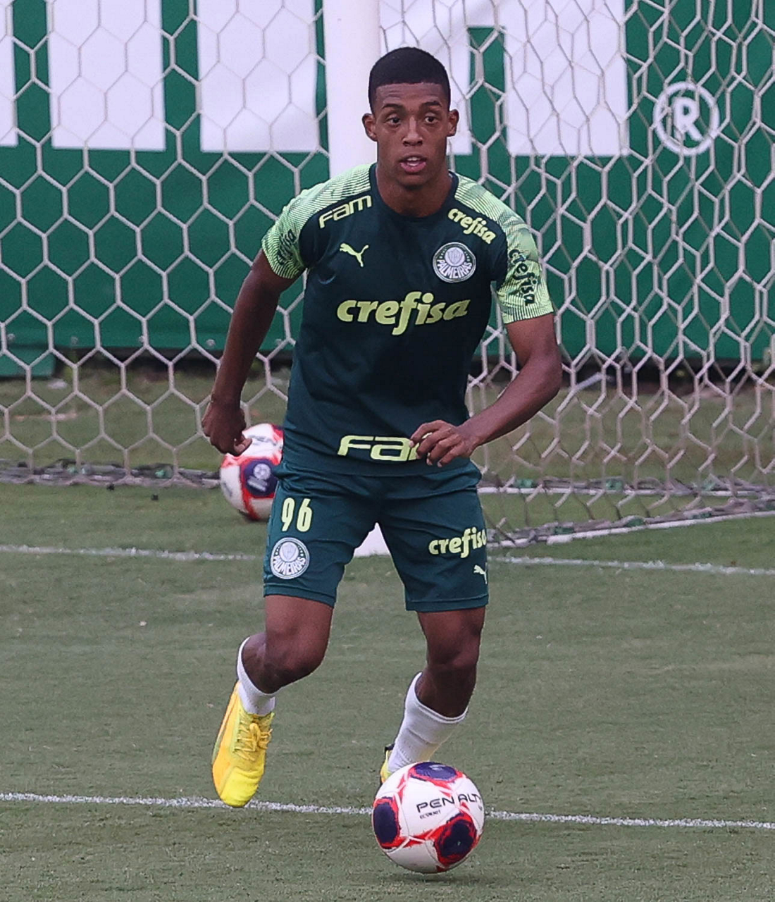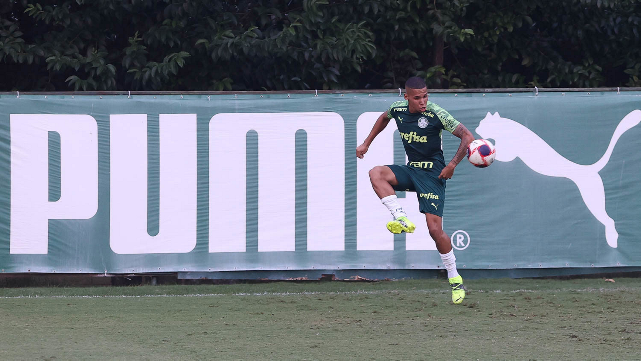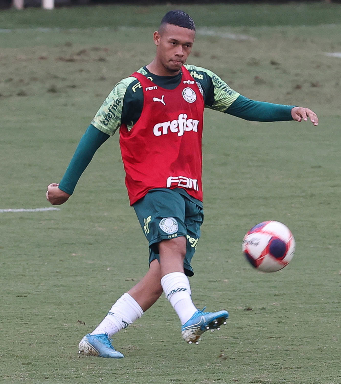 O jogador Gabriel Menino, da SE Palmeiras, durante treinamento, na Academia de Futebol. (Foto: Cesar Greco)