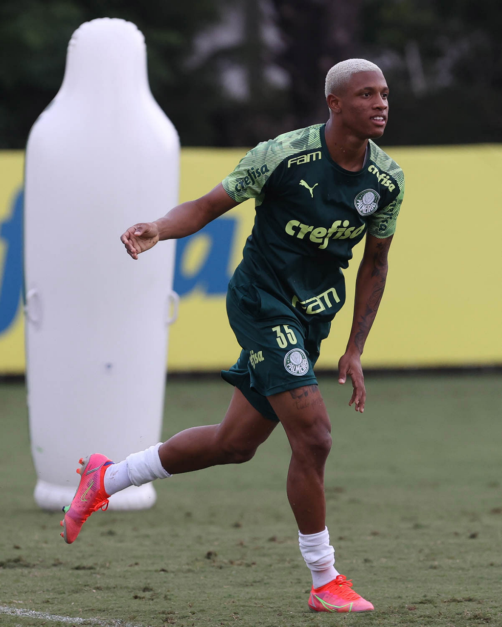 O jogador Vitinho, da SE Palmeiras, durante treinamento, na Academia de Futebol. (Foto: Cesar Greco)
