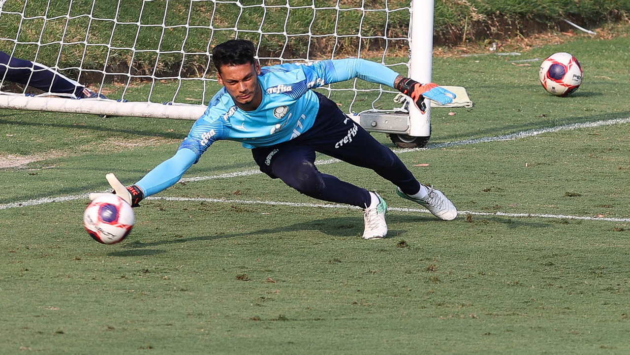 O goleiro Natan, da SE Palmeiras, durante treinamento, na Academia de Futebol. (Foto: Cesar Greco)