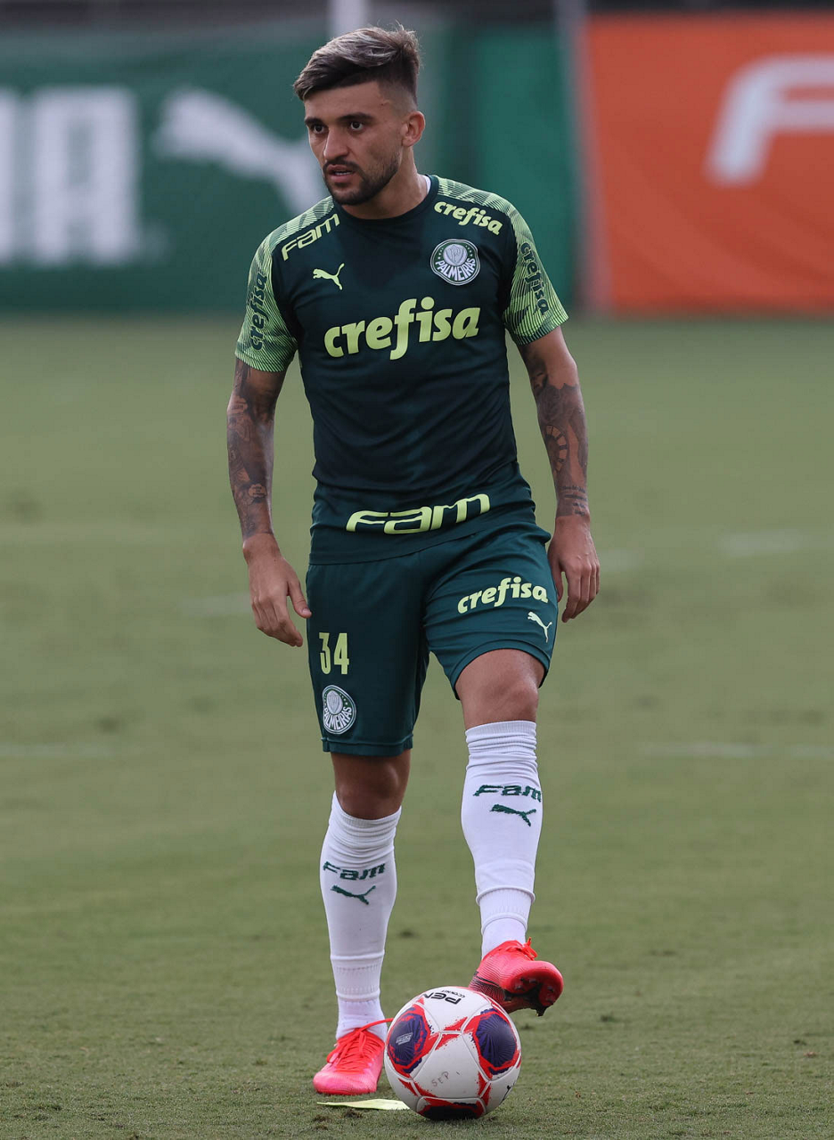 O jogador Gustavo Scarpa, da SE Palmeiras, durante treinamento, na Academia de Futebol. (Foto: Cesar Greco)