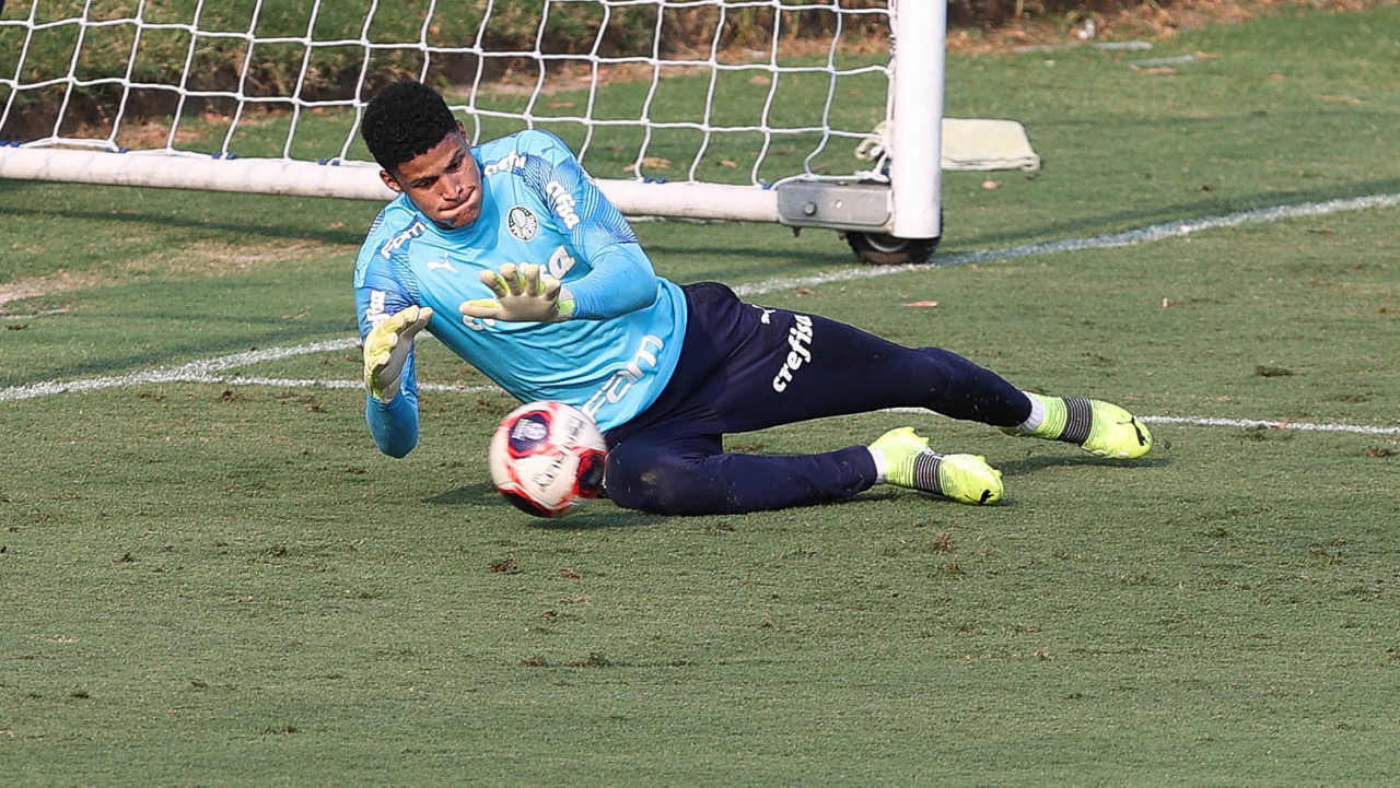 O goleiro Vinicius, da SE Palmeiras, durante treinamento, na Academia de Futebol. (Foto: Cesar Greco)