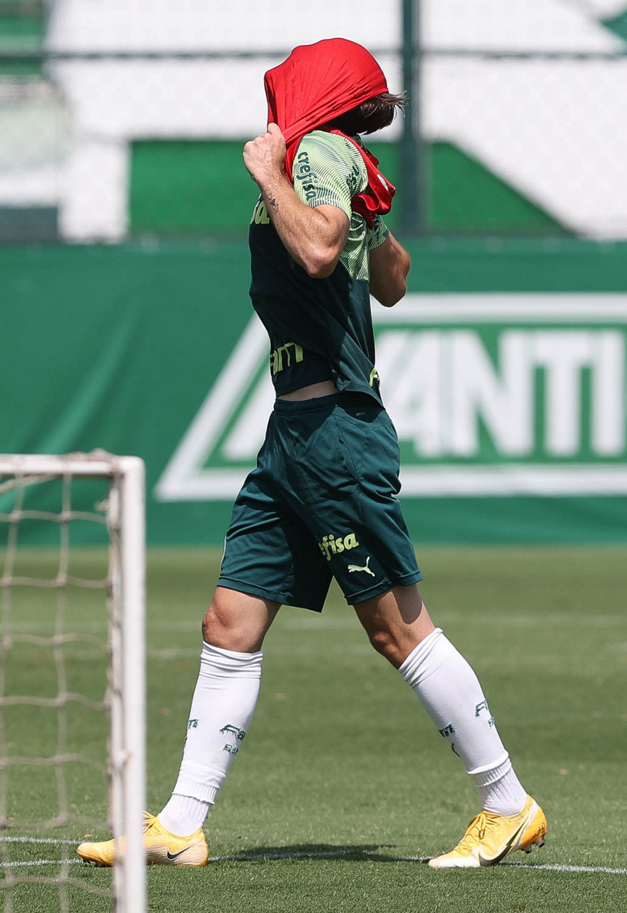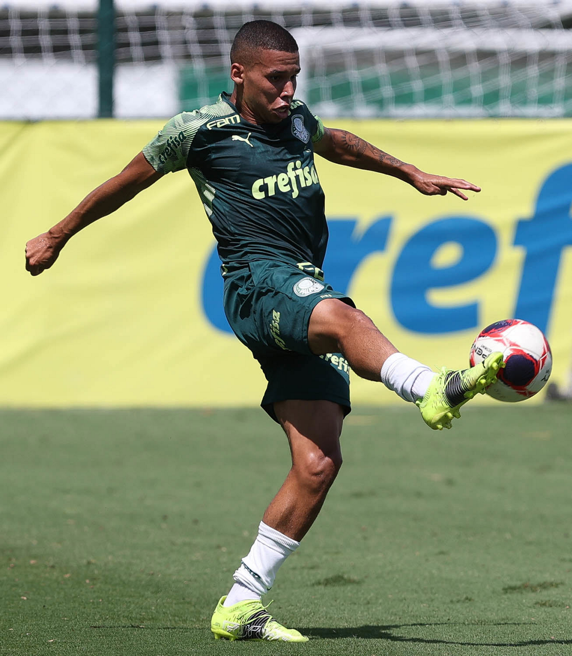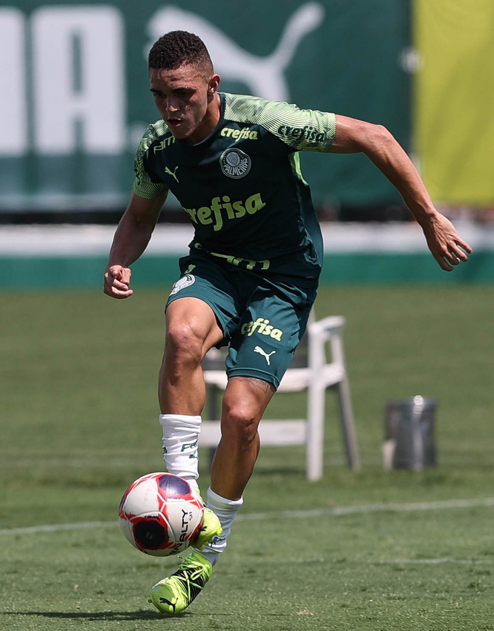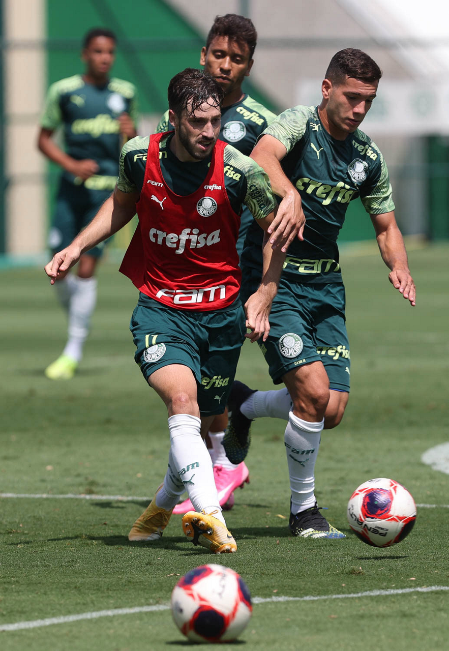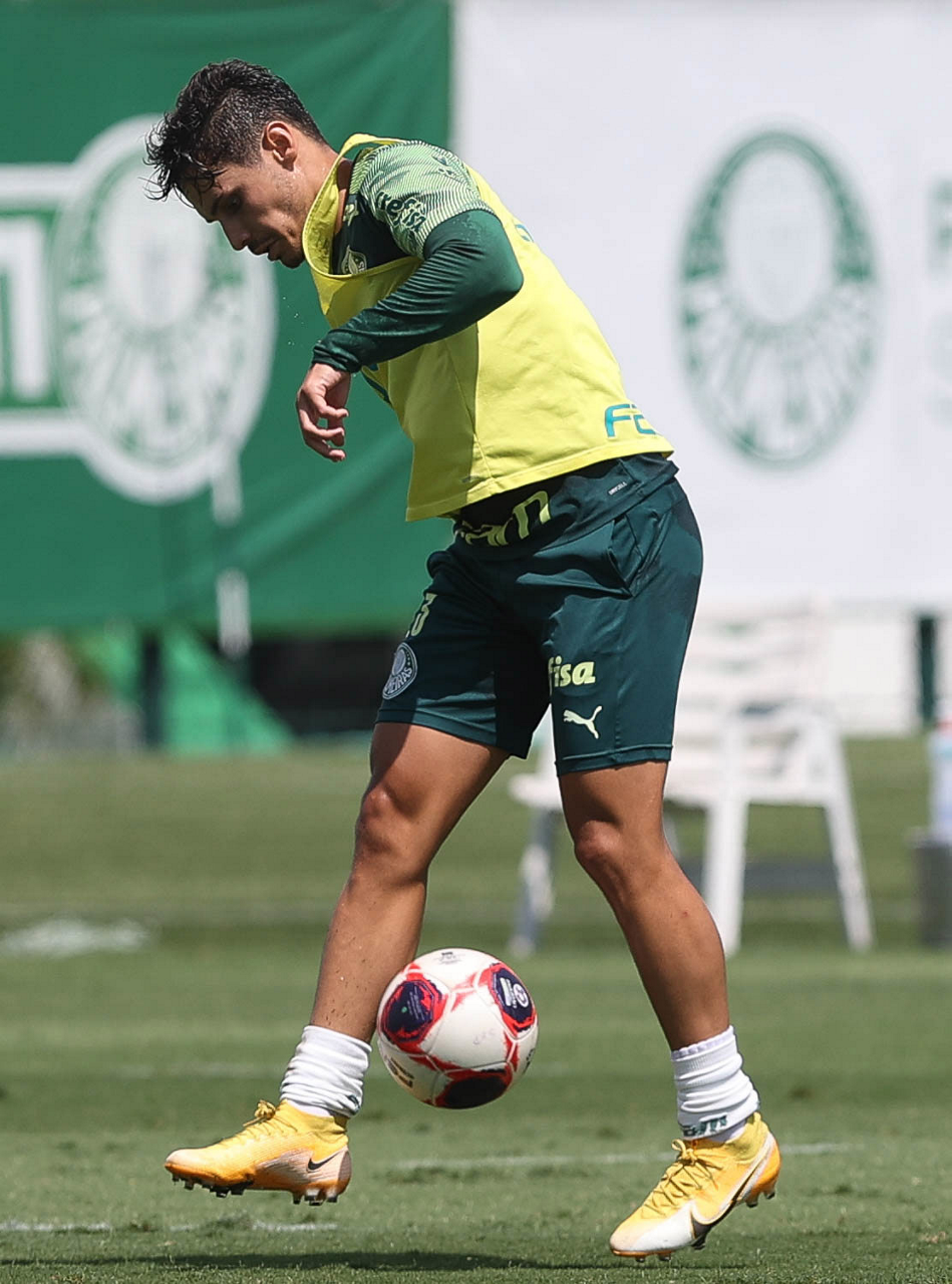 O jogador Raphael Veiga, da SE Palmeiras, durante treinamento, na Academia de Futebol. (Foto: Cesar Greco)