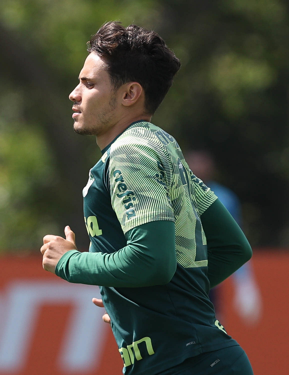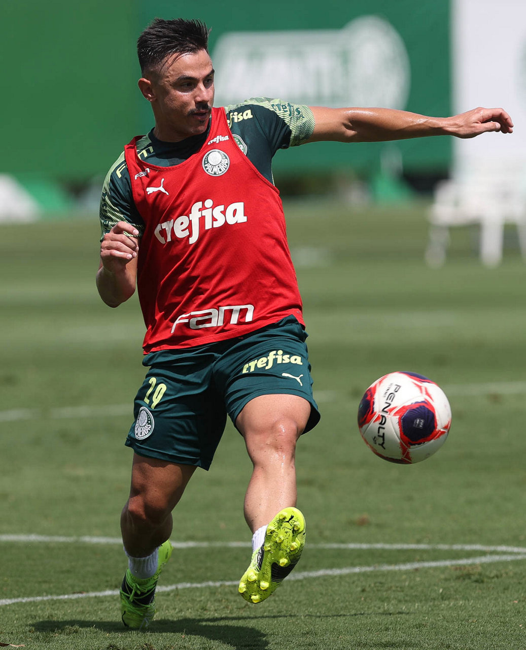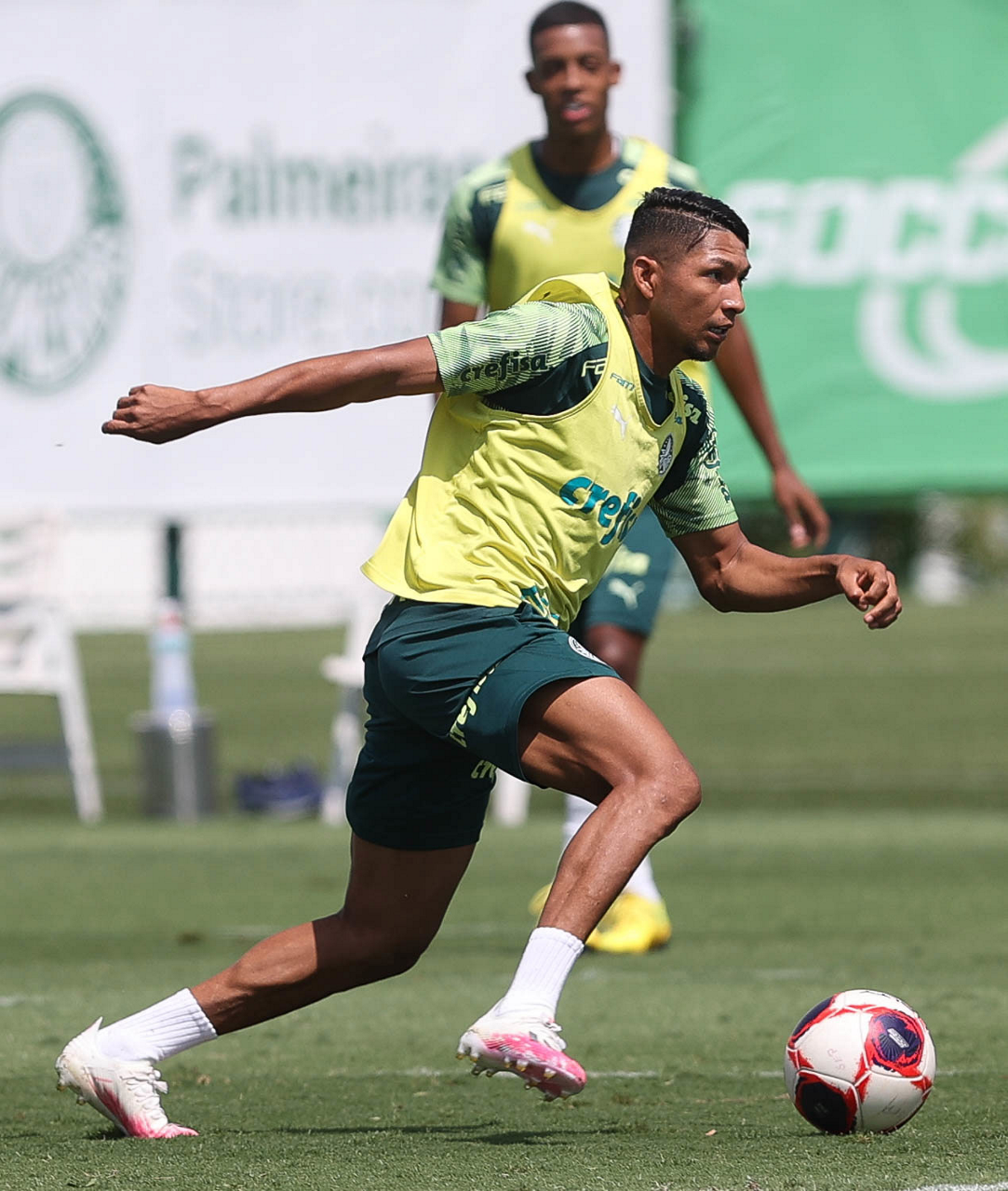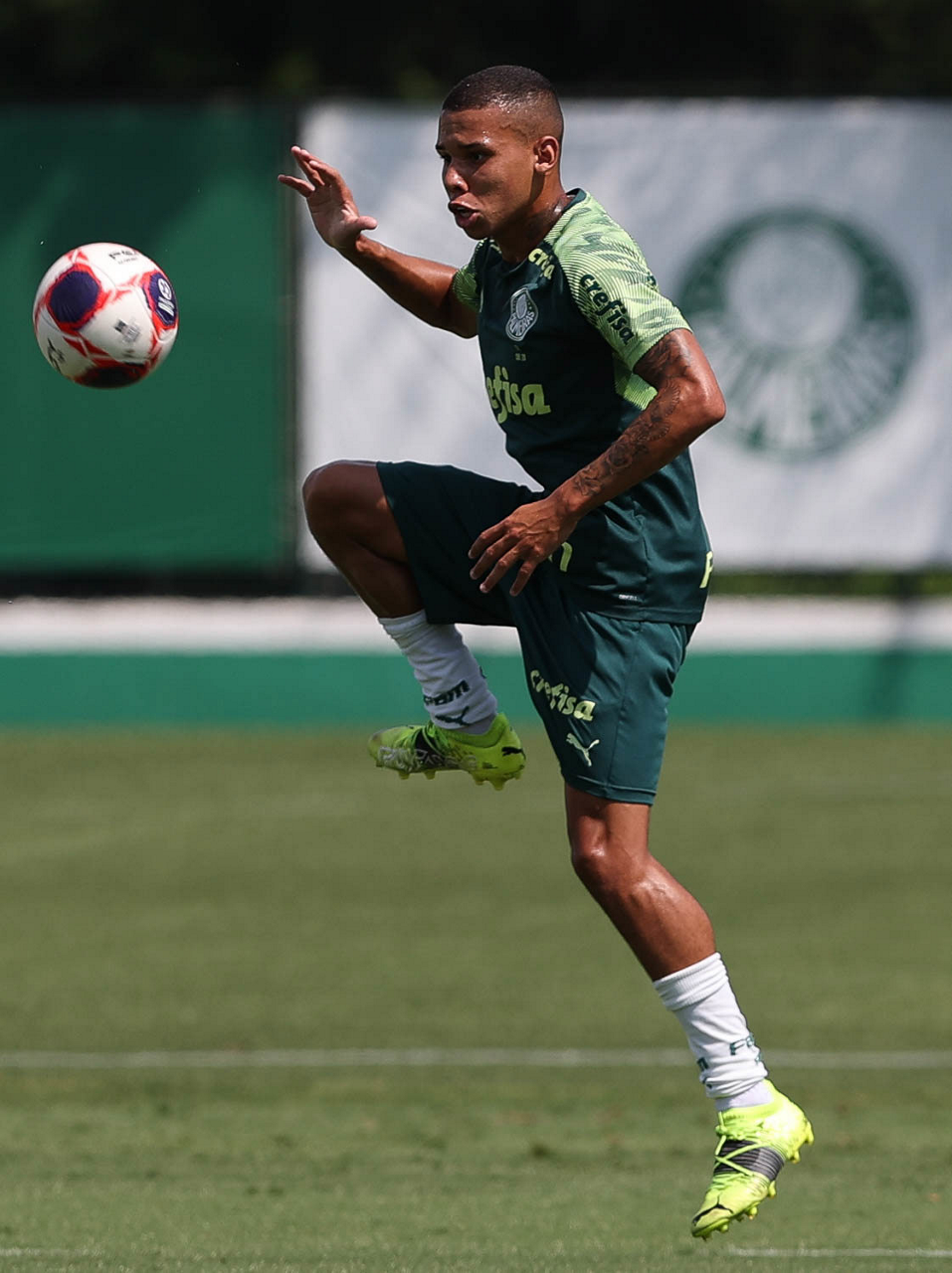O jogador Raphael Veiga, da SE Palmeiras, durante treinamento, na Academia de Futebol. (Foto: Cesar Greco)