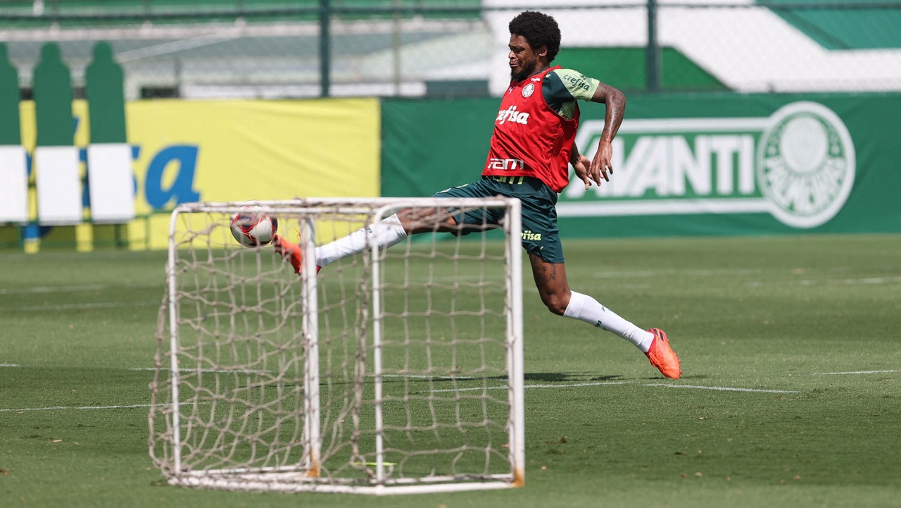 O jogador Luan, da SE Palmeiras, durante treinamento, na Academia de Futebol. (Foto: Cesar Greco)