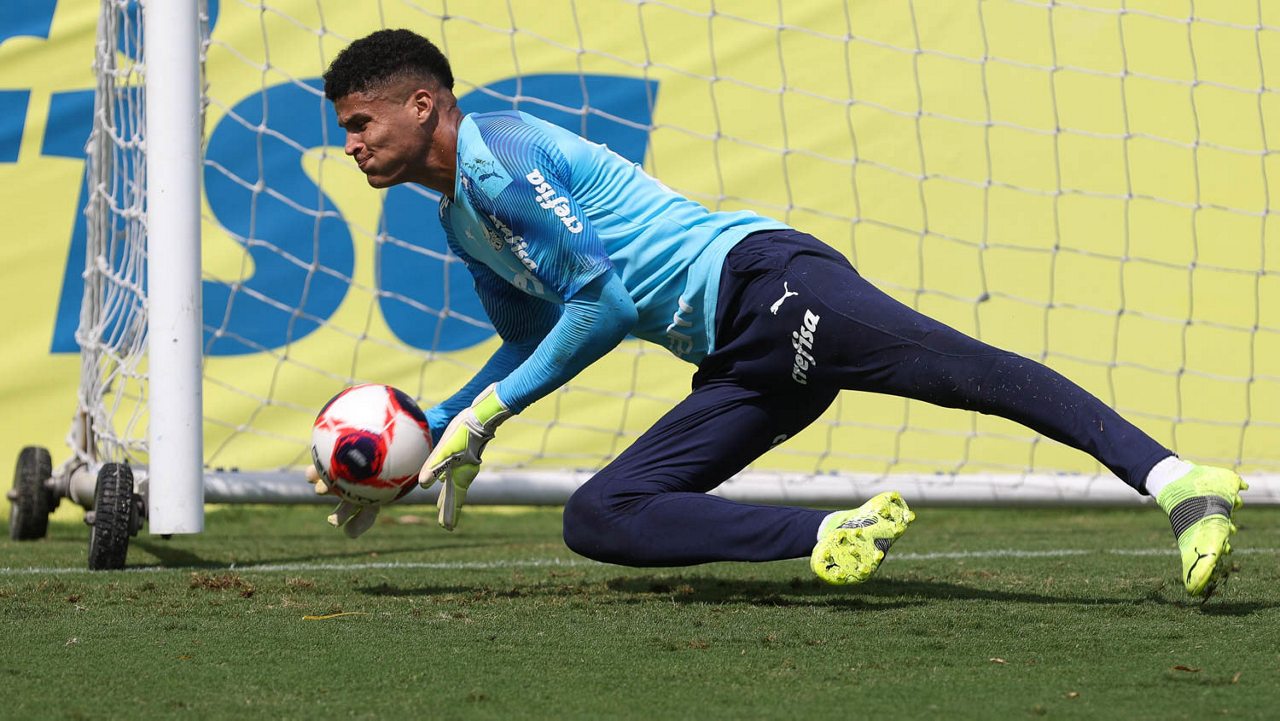 O goleiro Vinicius, da SE Palmeiras, durante treinamento, na Academia de Futebol. (Foto: Cesar Greco)