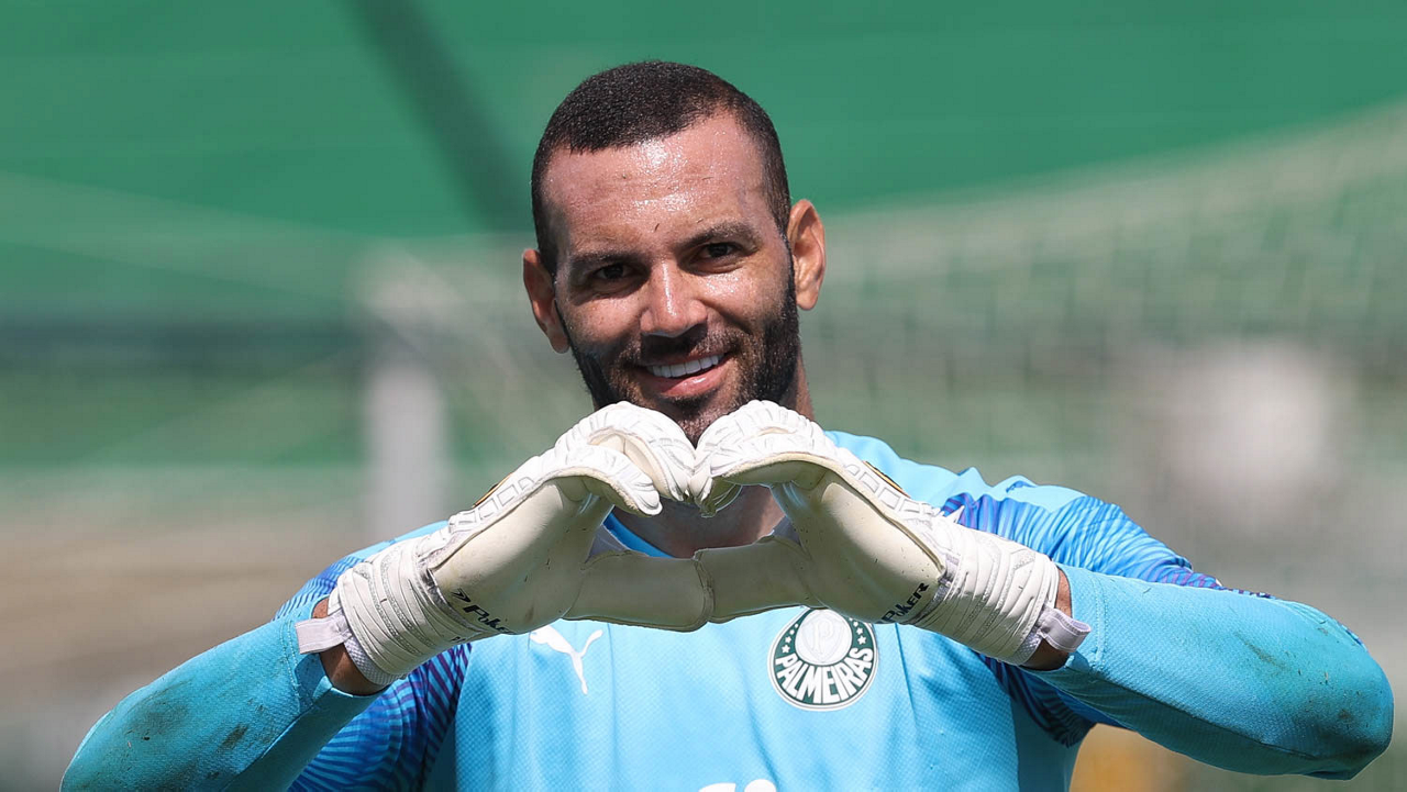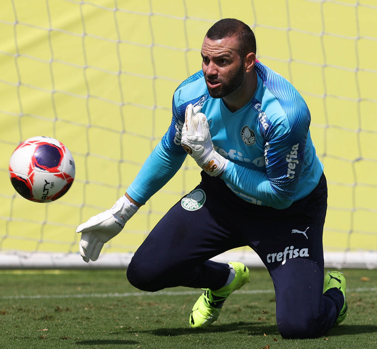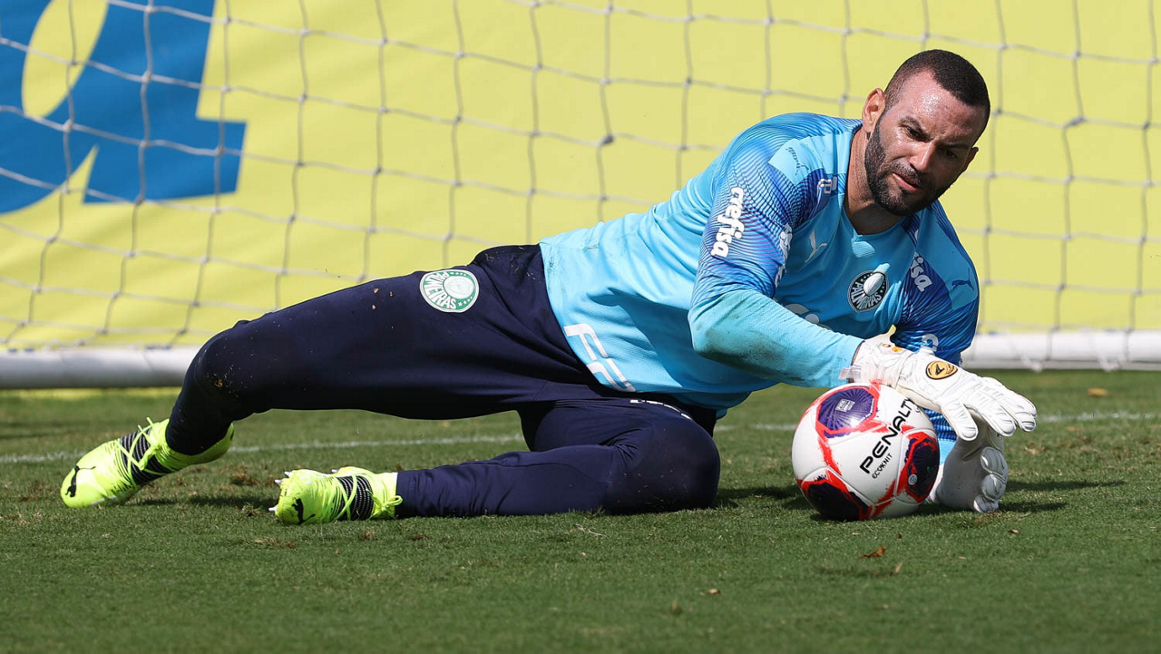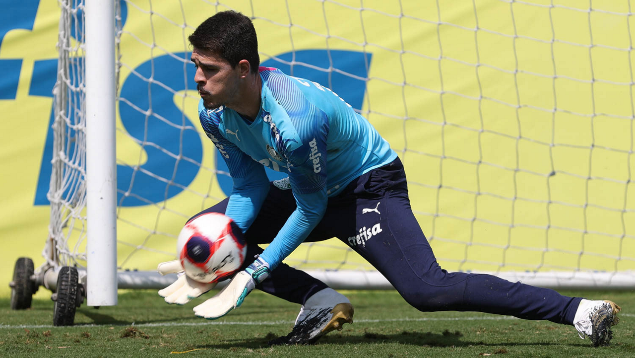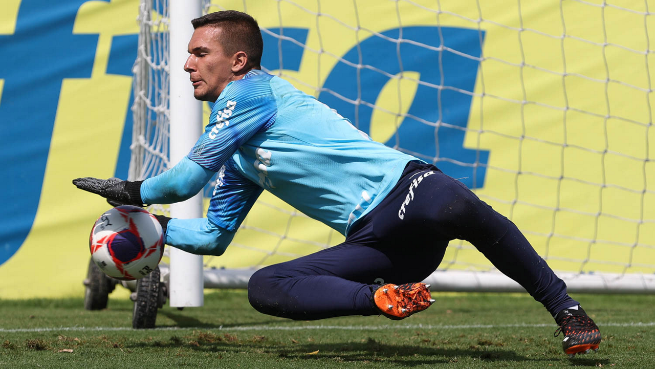 O goleiro Weverton, da SE Palmeiras, durante treinamento, na Academia de Futebol. (Foto: Cesar Greco)