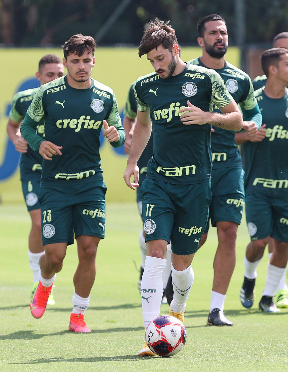 Os jogadores da SE Palmeiras, durante treinamento, na Academia de Futebol. (Foto: Cesar Greco)