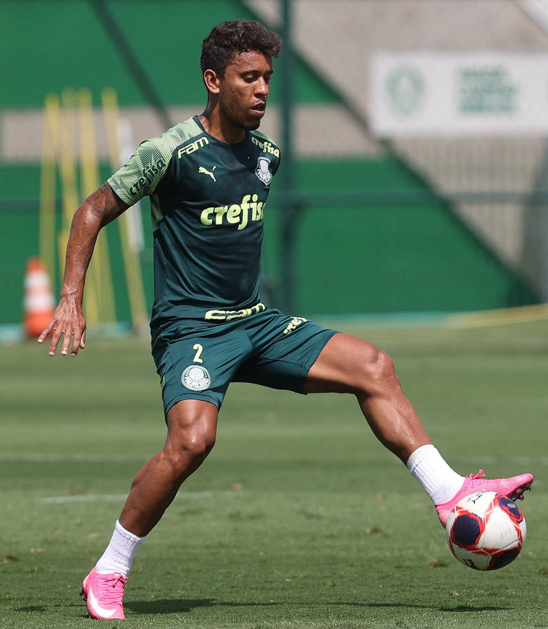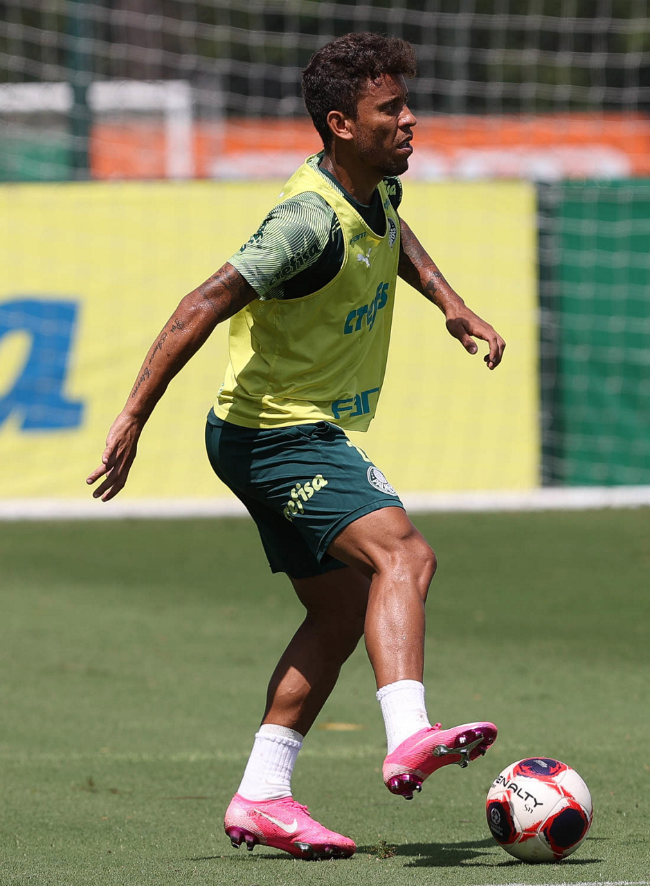 O jogador Marcos Rocha, da SE Palmeiras, durante treinamento, na Academia de Futebol. (Foto: Cesar Greco)