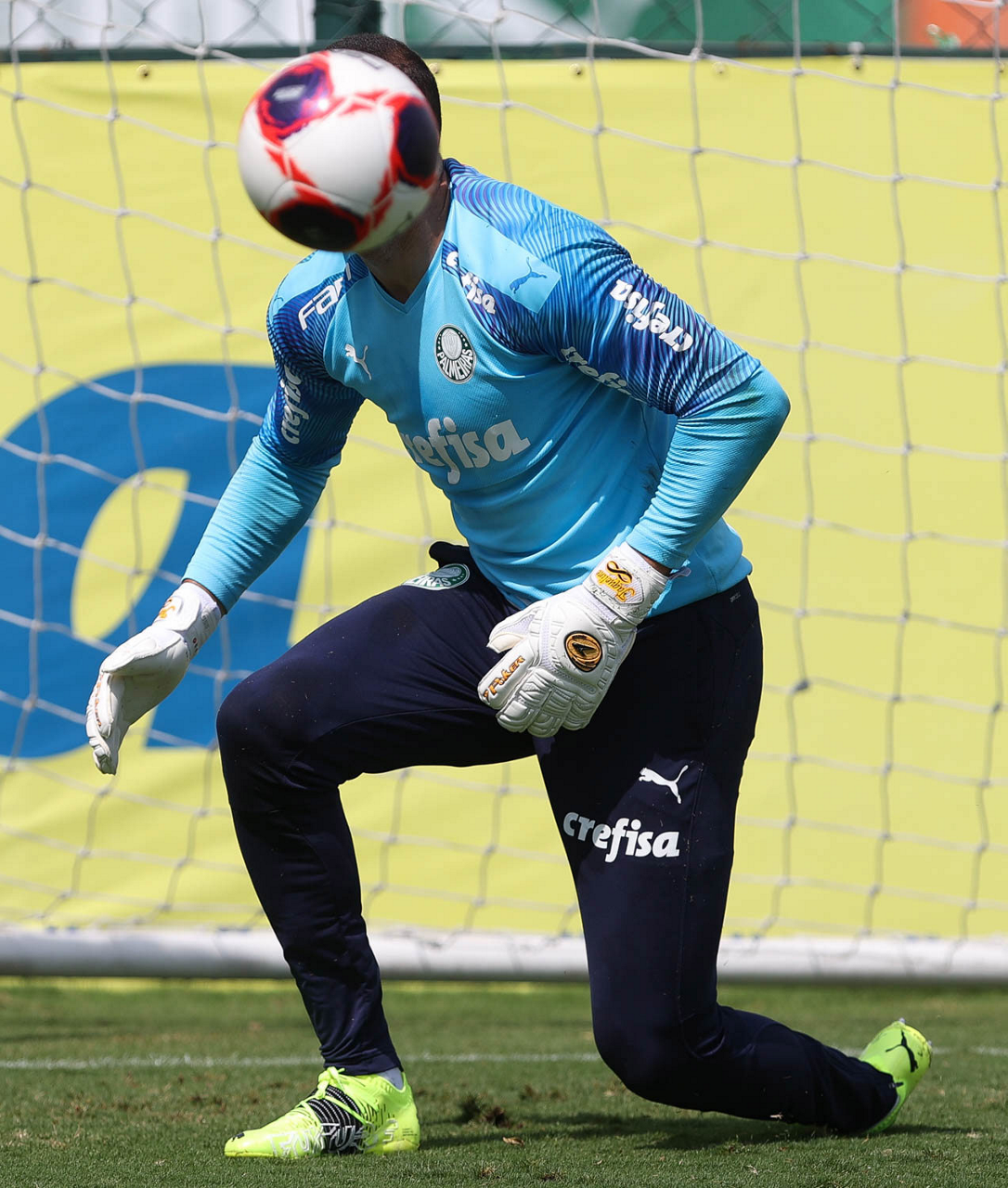 O goleiro Mateus, da SE Palmeiras, durante treinamento, na Academia de Futebol. (Foto: Cesar Greco)