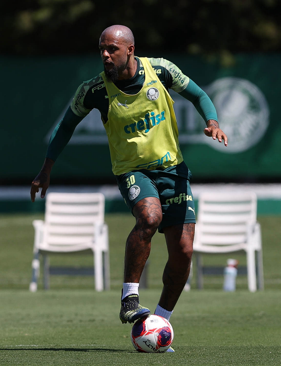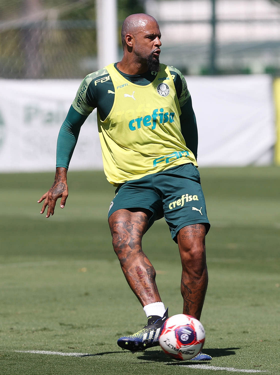 O jogador Felipe Melo, da SE Palmeiras, durante treinamento, na Academia de Futebol. (Foto: Cesar Greco)