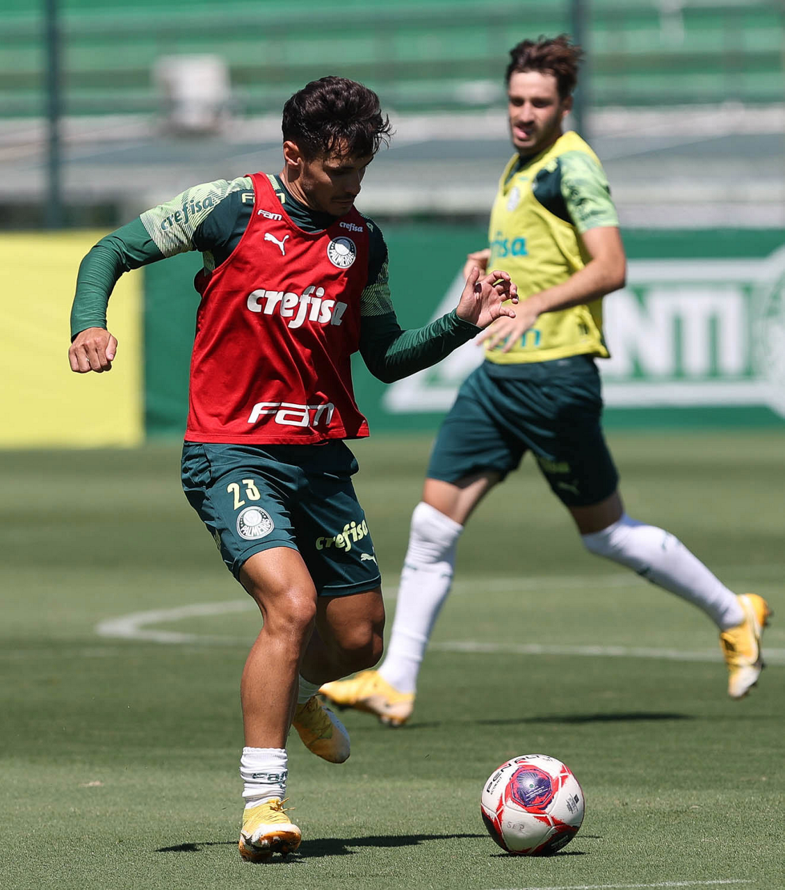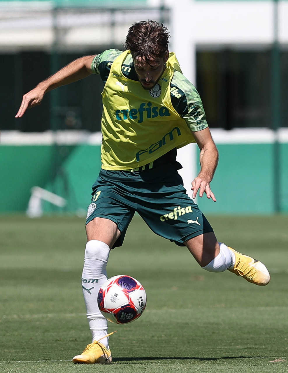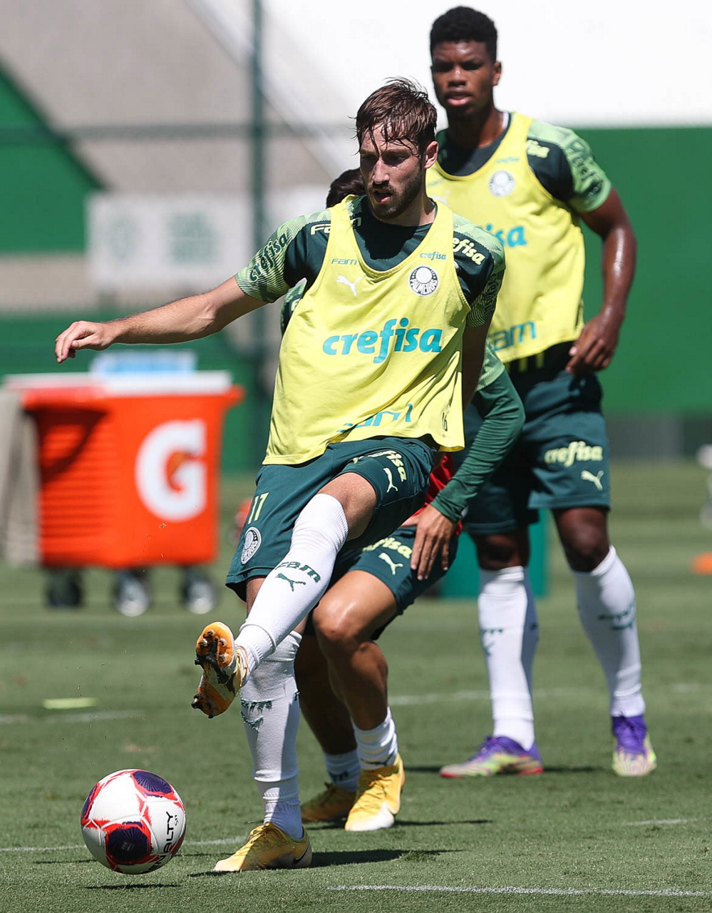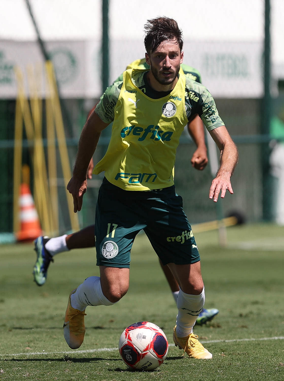 O jogador Raphael Veiga, da SE Palmeiras, durante treinamento, na Academia de Futebol. (Foto: Cesar Greco)