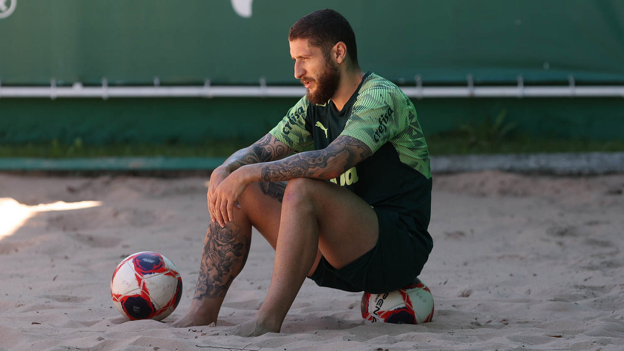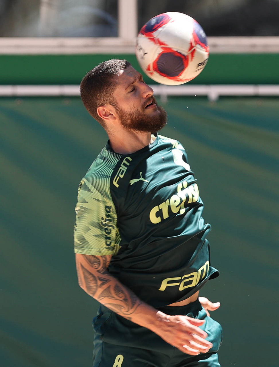 O jogador Zé Rafael, da SE Palmeiras, durante treinamento, na Academia de Futebol. (Foto: Cesar Greco)