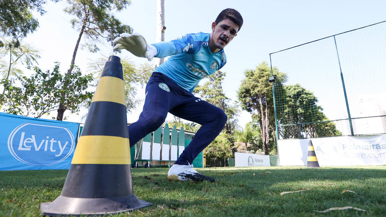 O goleiro Weverton, da SE Palmeiras, durante treinamento, na Academia de Futebol. (Foto: Cesar Greco)