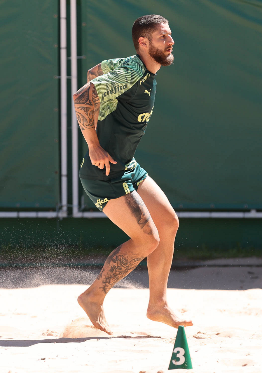 O jogador Gustavo Gómez, da SE Palmeiras, durante treinamento, na Academia de Futebol. (Foto: Cesar Greco)