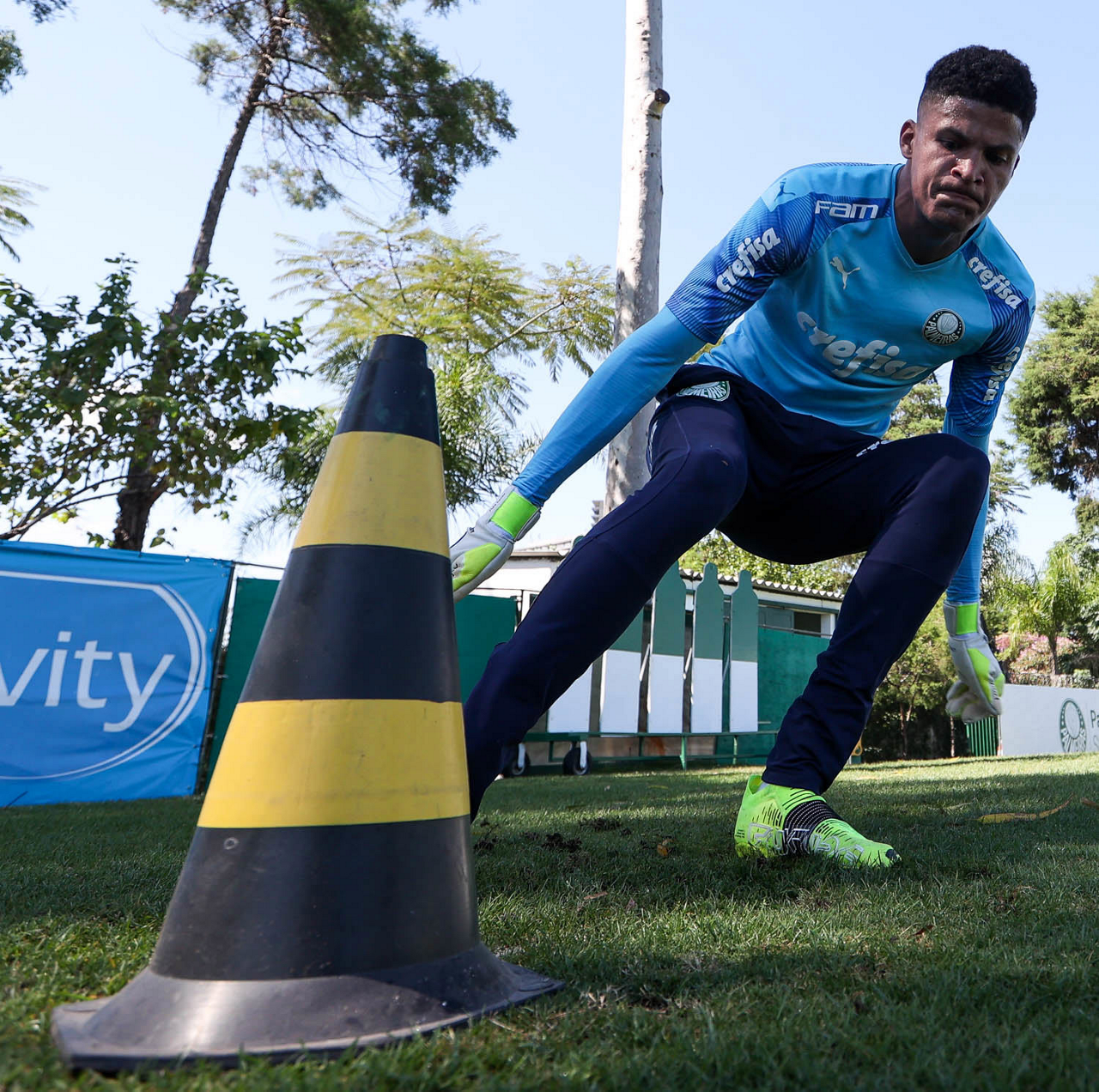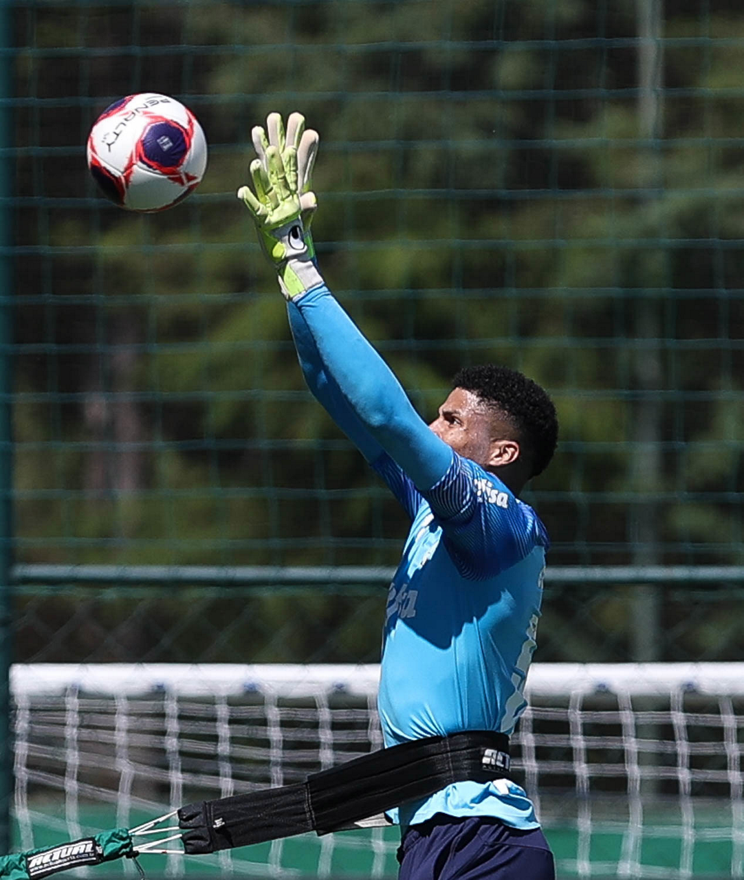 O goleiro Mateus, da SE Palmeiras, durante treinamento, na Academia de Futebol. (Foto: Cesar Greco)
