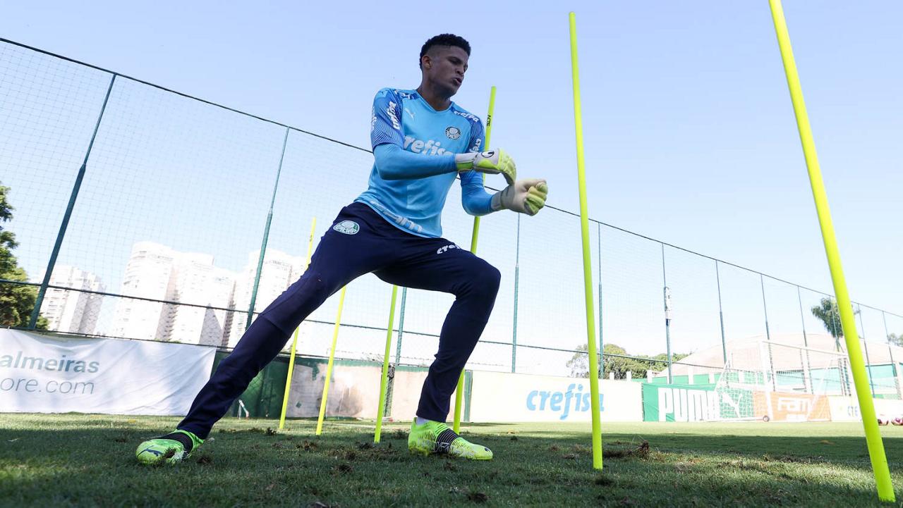O goleiro Vinicius, da SE Palmeiras, durante treinamento, na Academia de Futebol. (Foto: Cesar Greco)