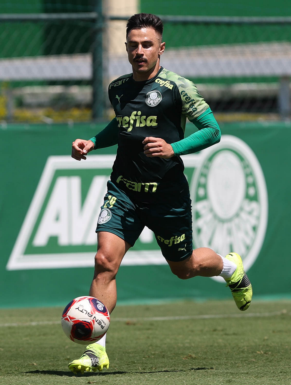 O joagdor Fabinho, da SE Palmeiras, durante treinamento, na Academia de Futebol. (Foto: Cesar Greco)