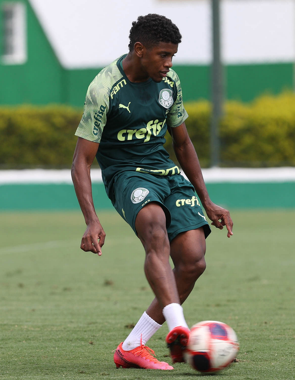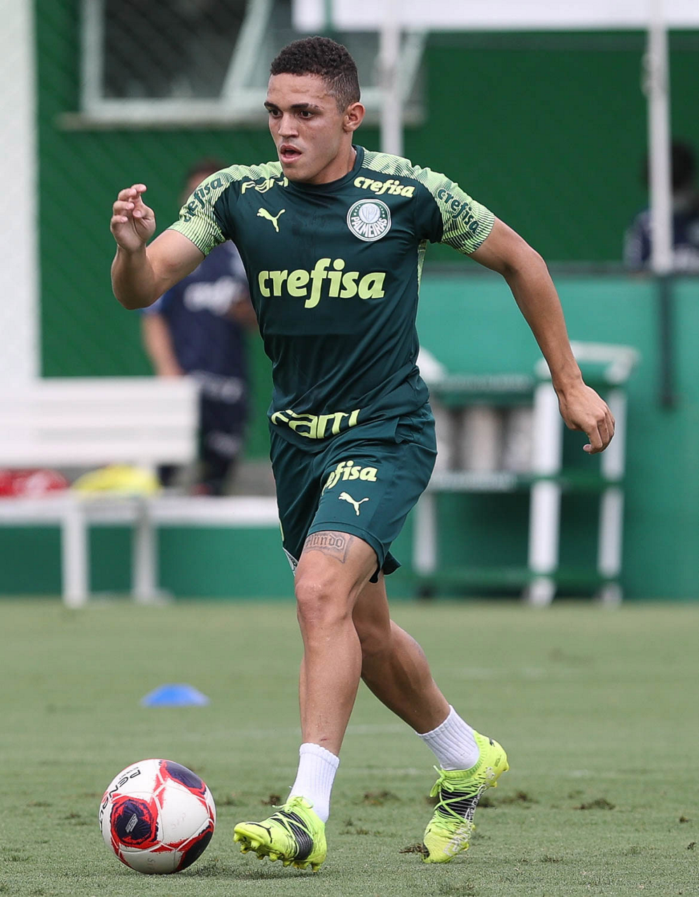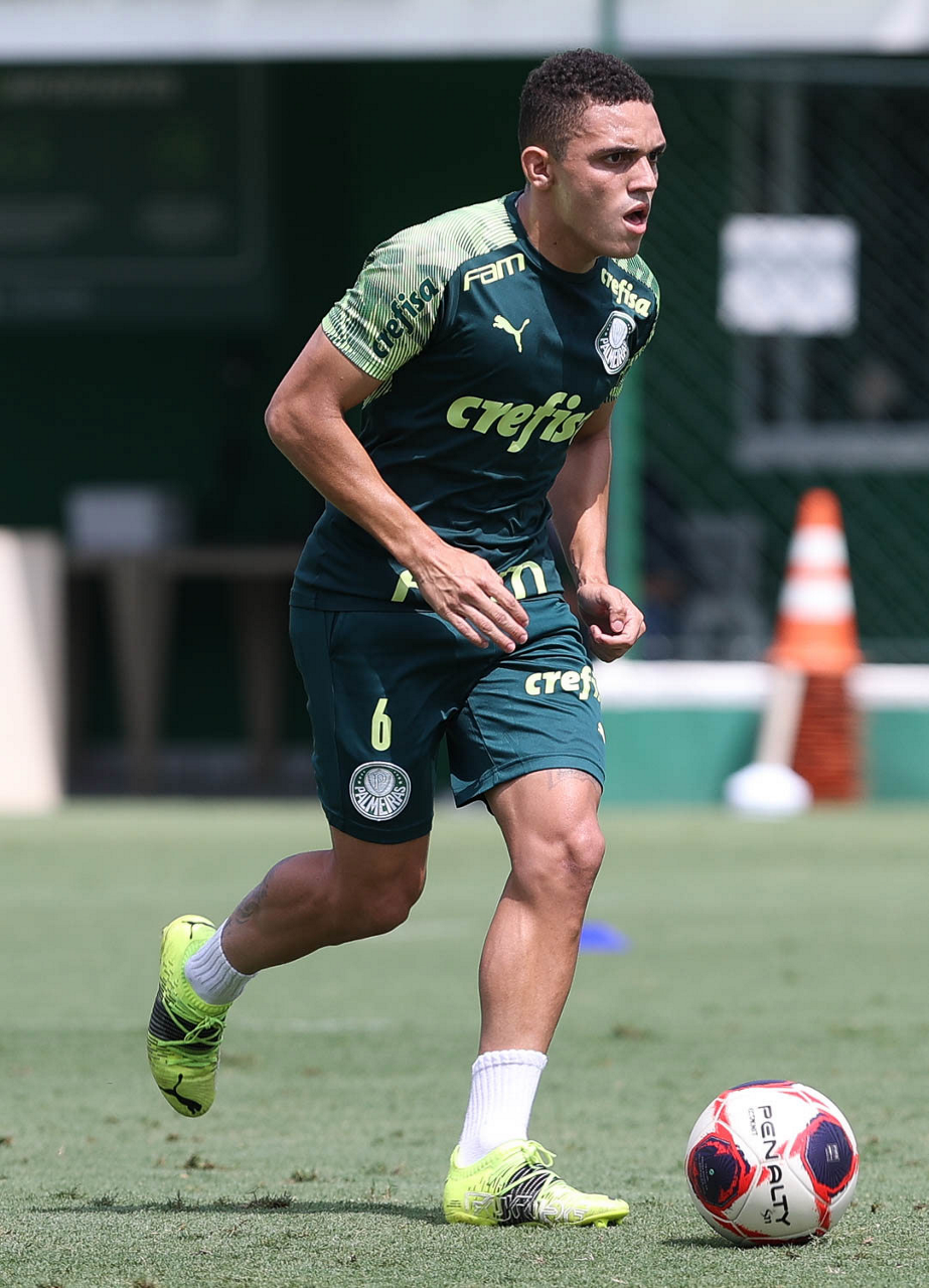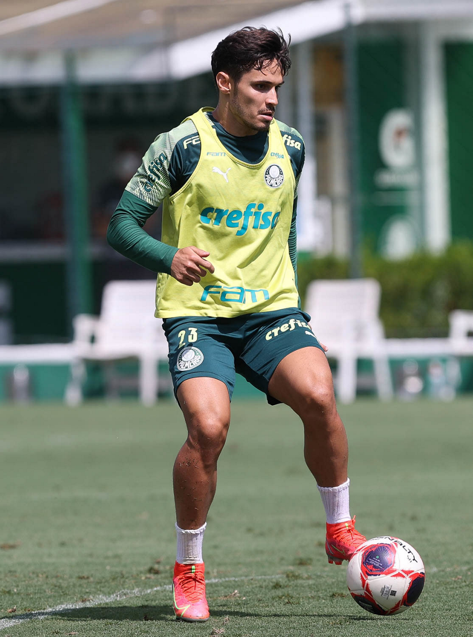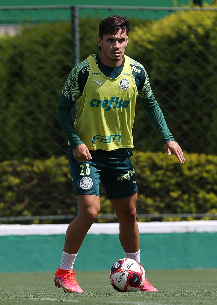 O jogador Raphael Veiga, da SE Palmeiras, durante treinamento, na Academia de Futebol. (Foto: Cesar Greco)