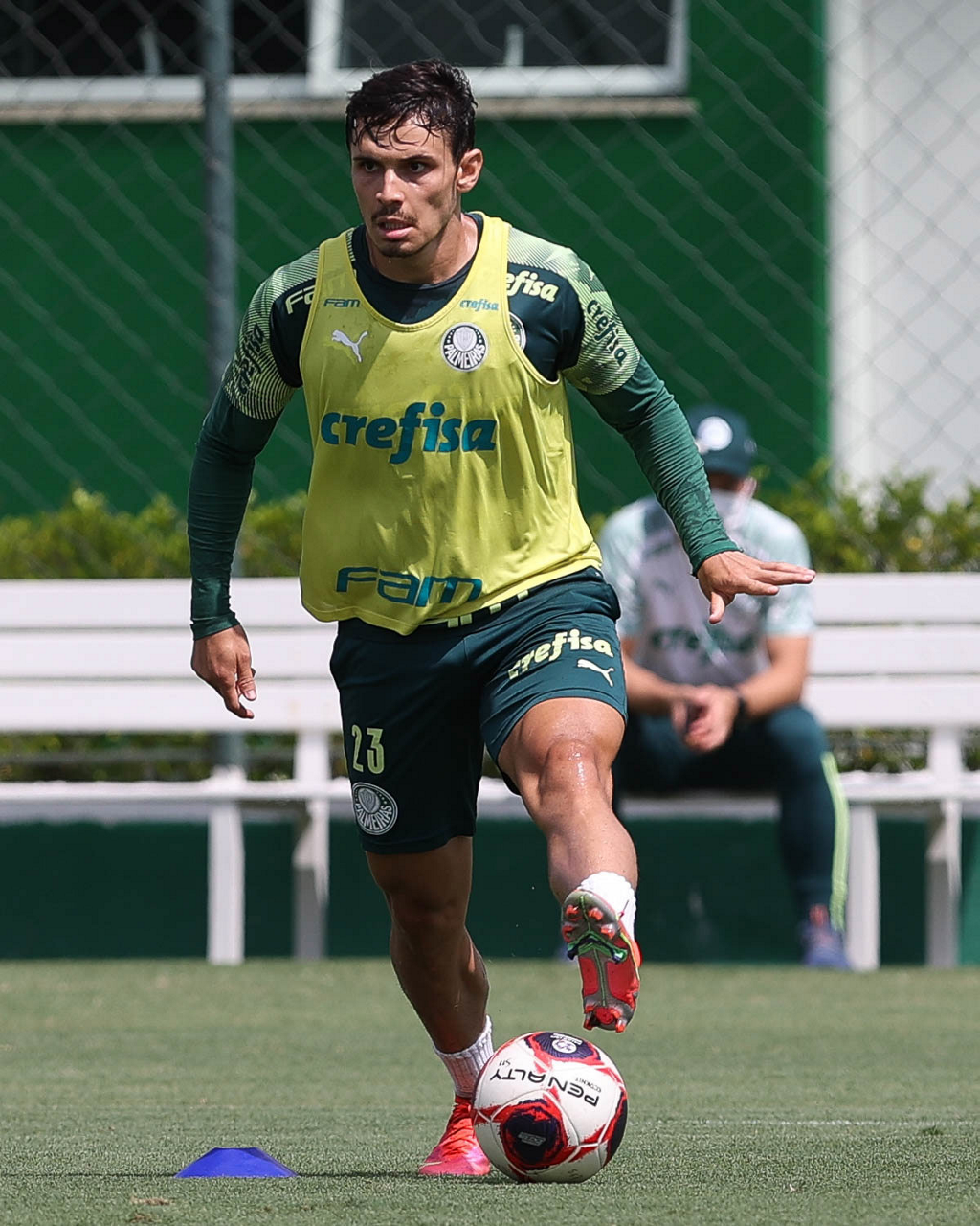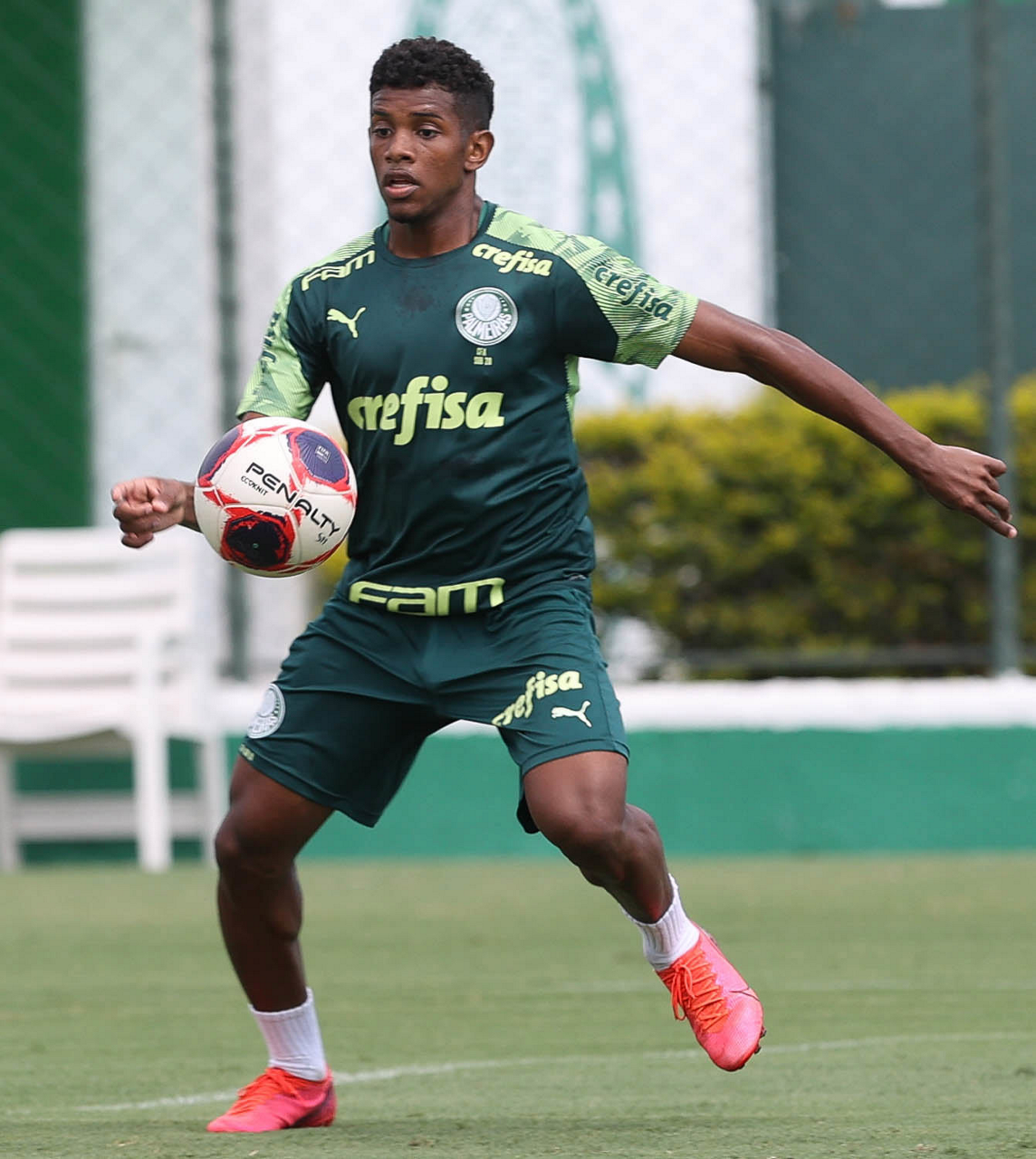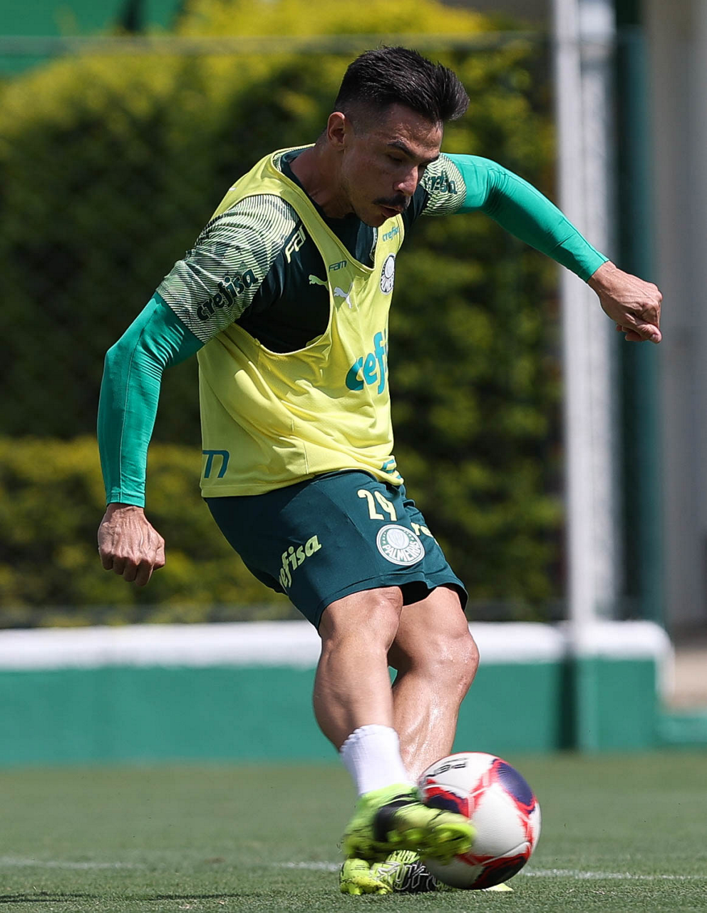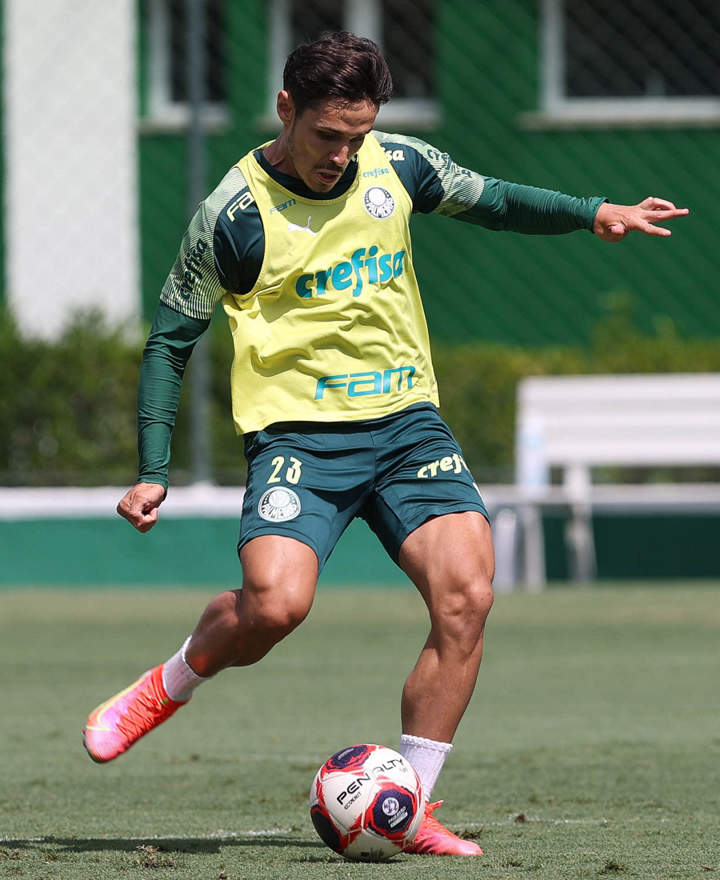 O jogador Raphael Veiga, da SE Palmeiras, durante treinamento, na Academia de Futebol. (Foto: Cesar Greco)