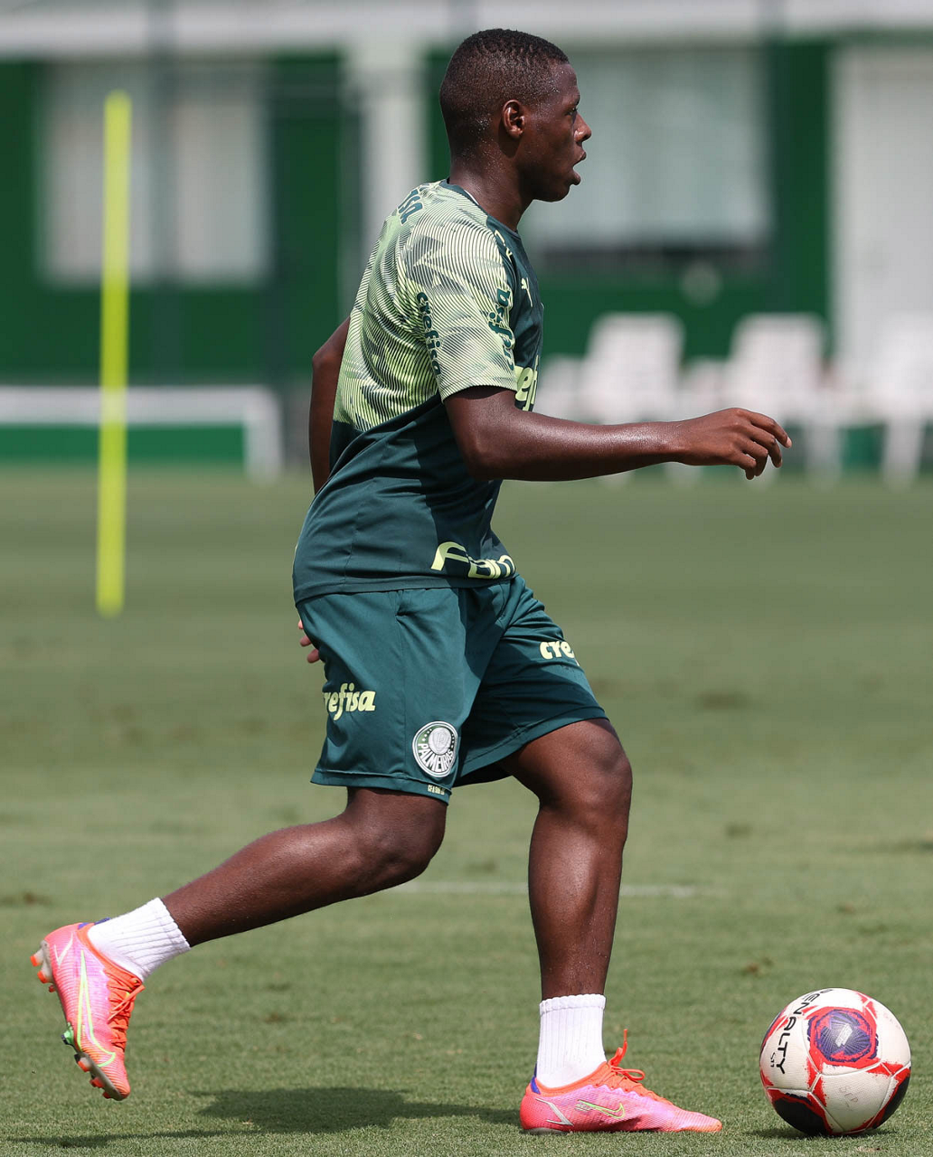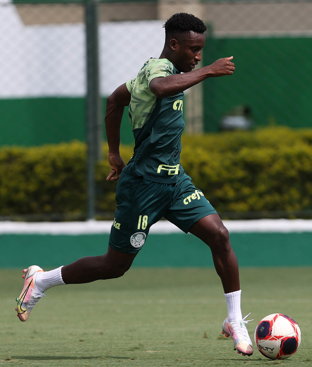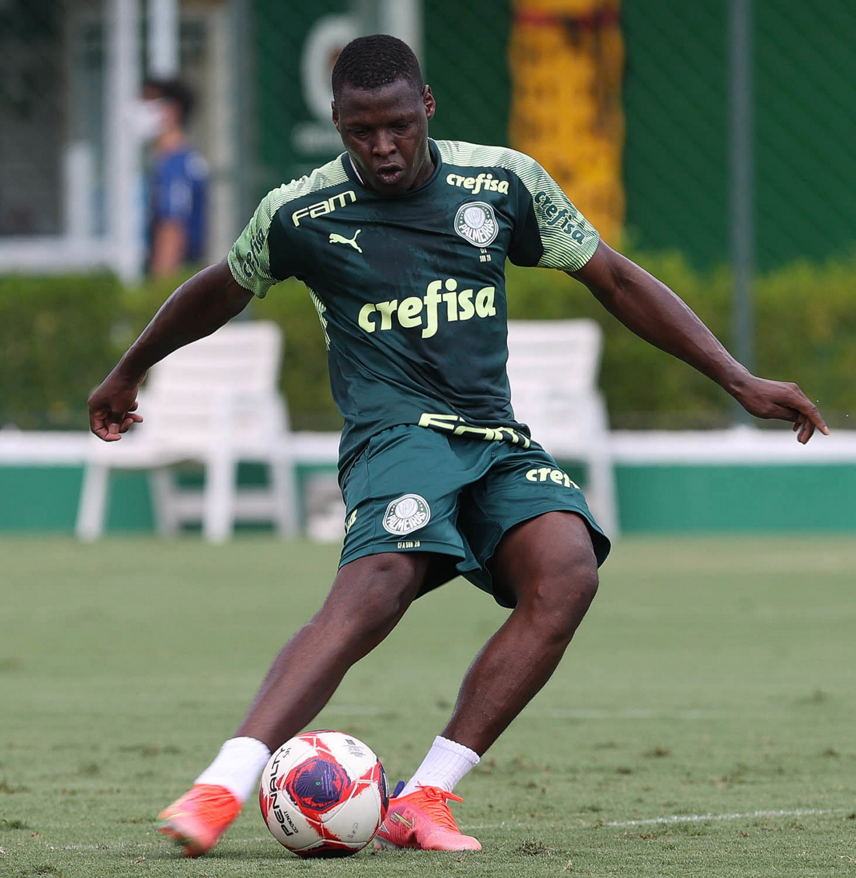 O jogador Angulo, da SE Palmeiras, durante treinamento, na Academia de Futebol. (Foto: Cesar Greco)