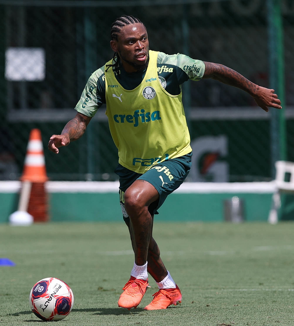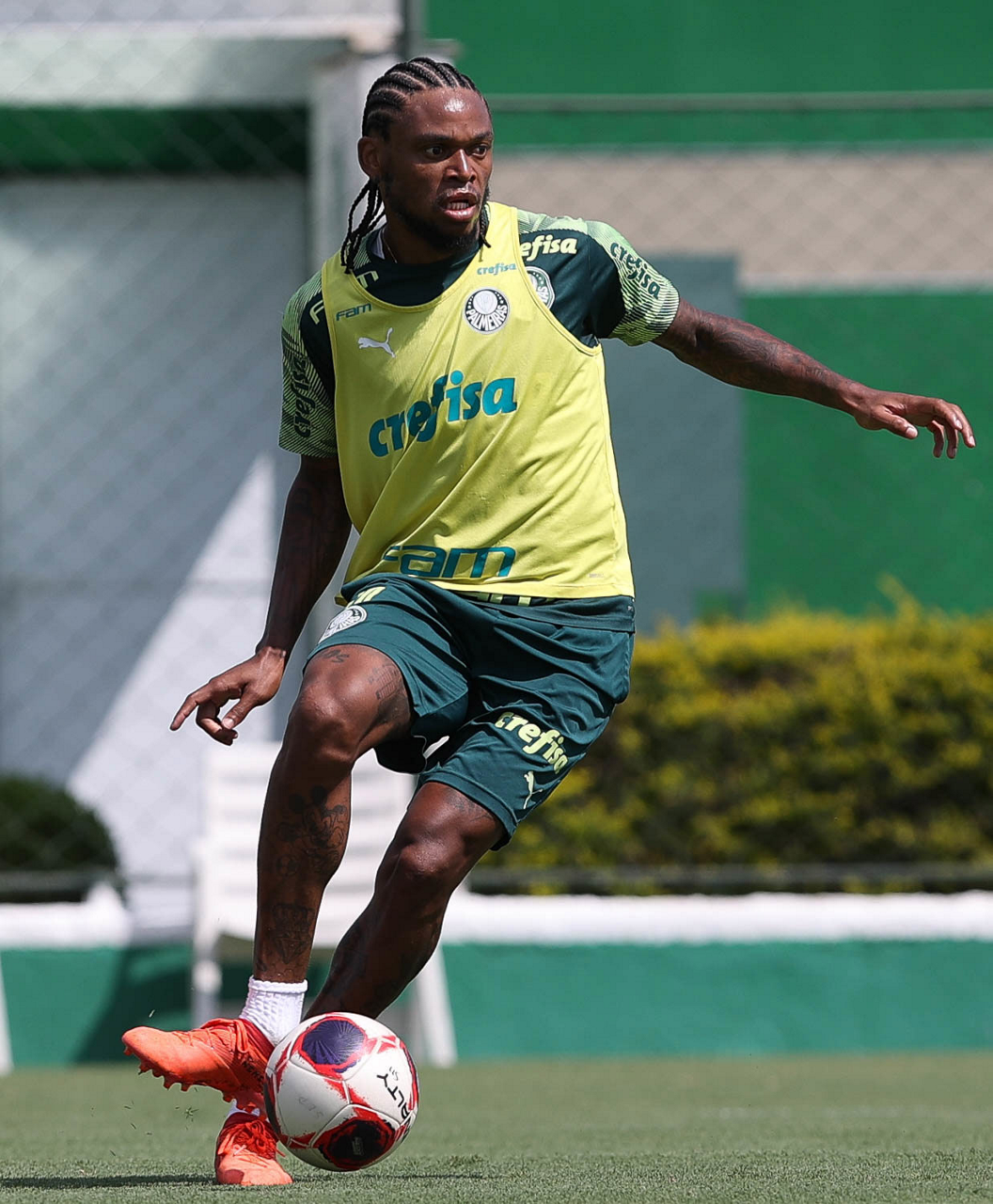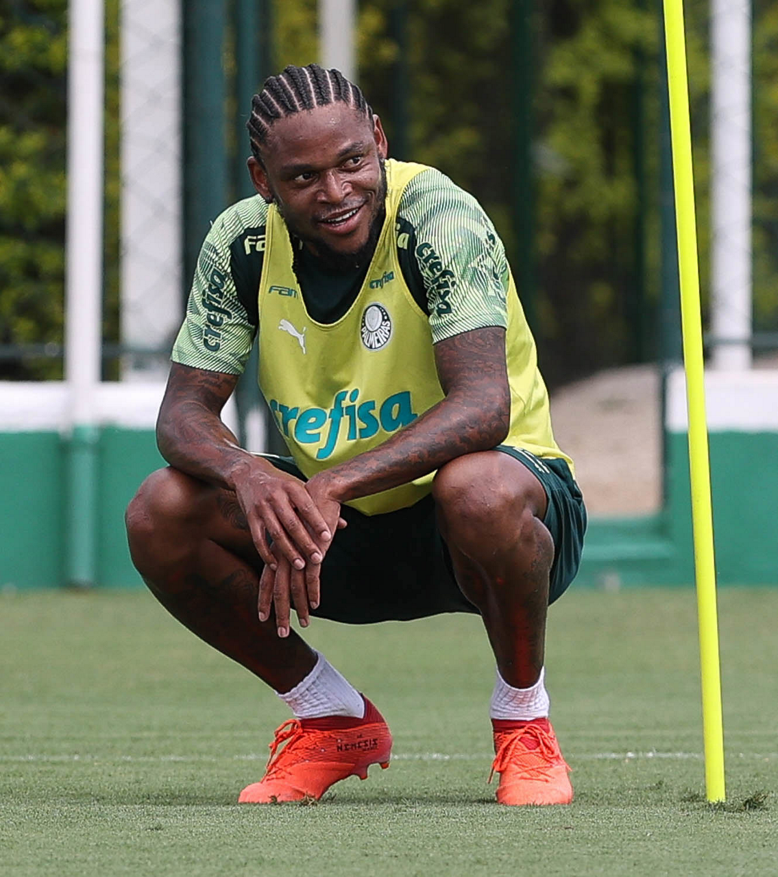 O jogador Angulo, da SE Palmeiras, durante treinamento, na Academia de Futebol. (Foto: Cesar Greco)