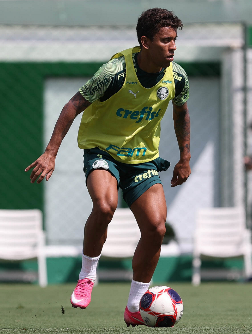 O jogador Marcelinho, da SE Palmeiras, durante treinamento, na Academia de Futebol. (Foto: Cesar Greco)