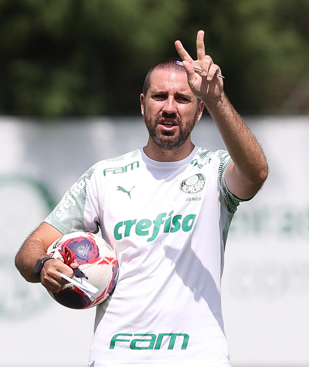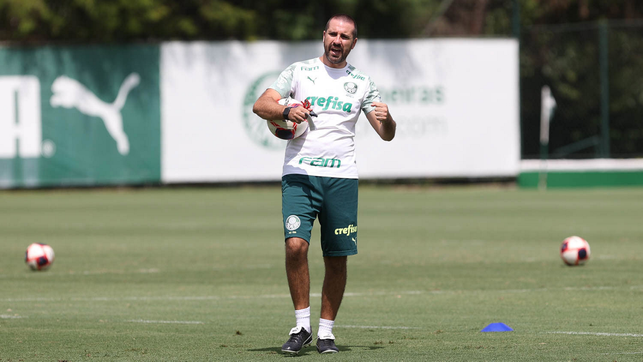 O preparador físico João Martins, da SE Palmeiras, durante treinamento, na Academia de Futebol. (Foto: Cesar Greco)