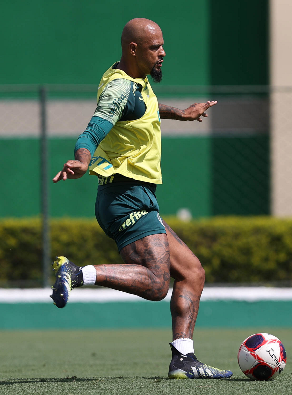 O jogador Felipe Melo, da SE Palmeiras, durante treinamento, na Academia de Futebol. (Foto: Cesar Greco)