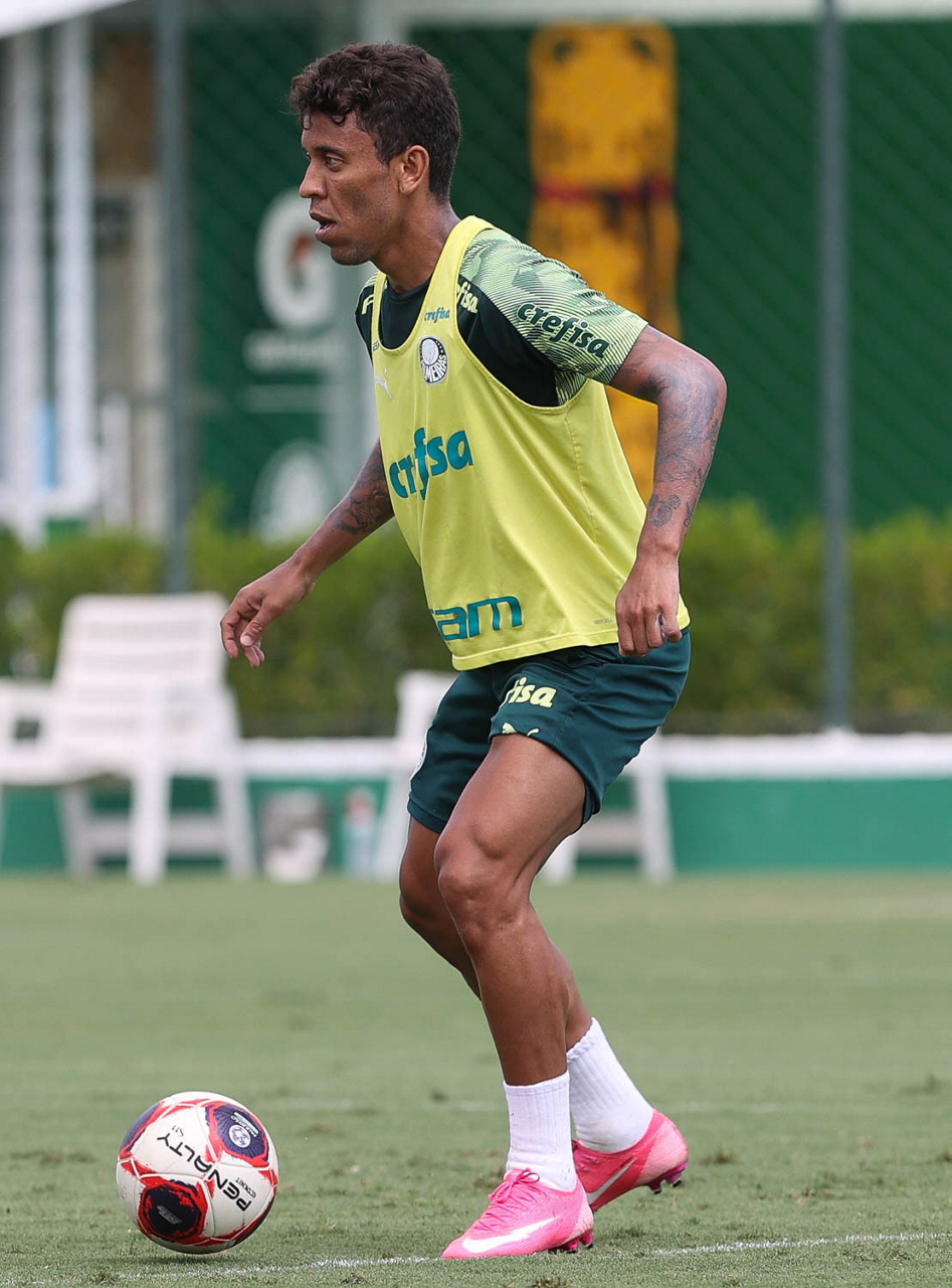 O jogador Marcos Rocha, da SE Palmeiras, durante treinamento, na Academia de Futebol. (Foto: Cesar Greco)