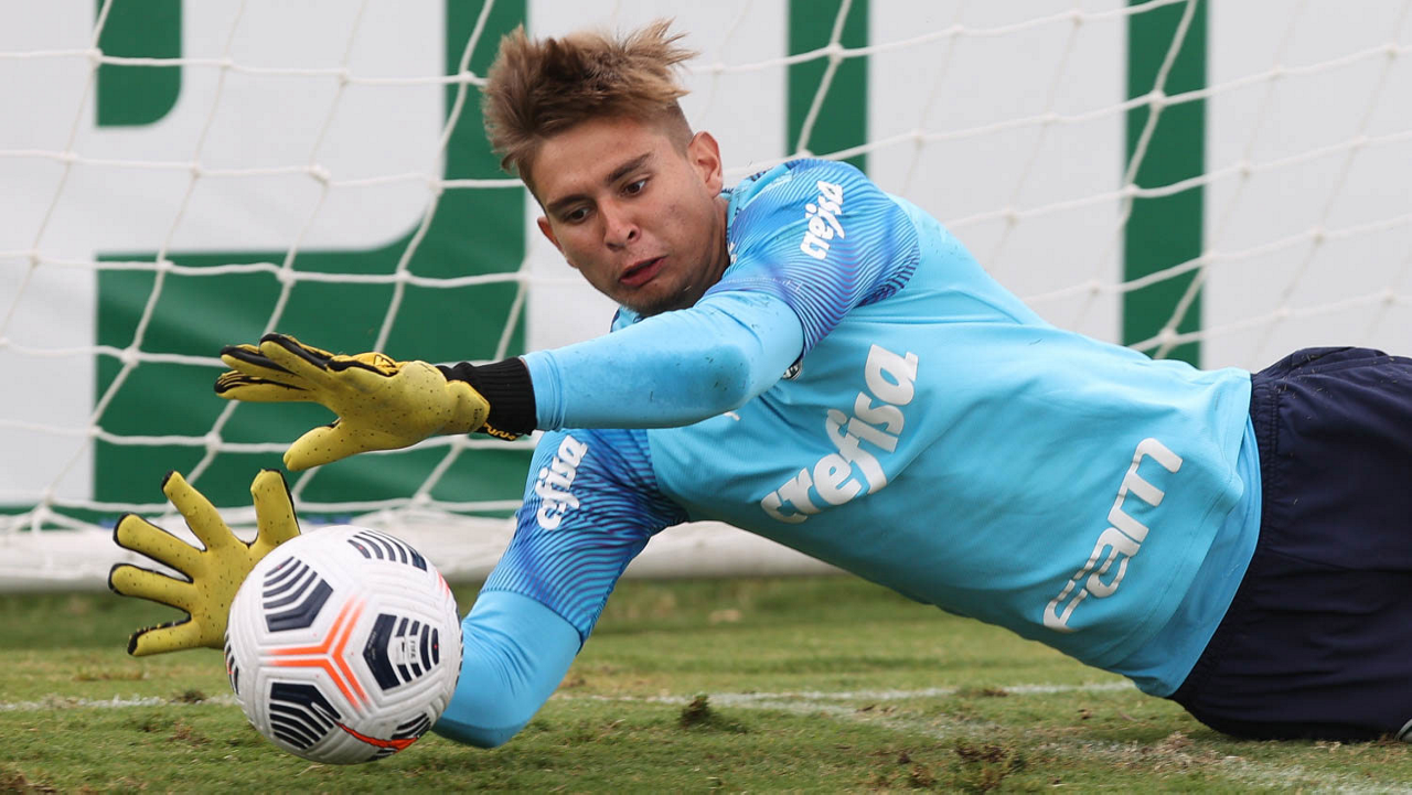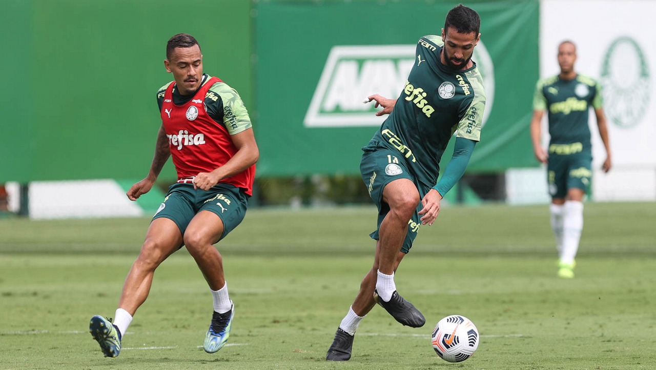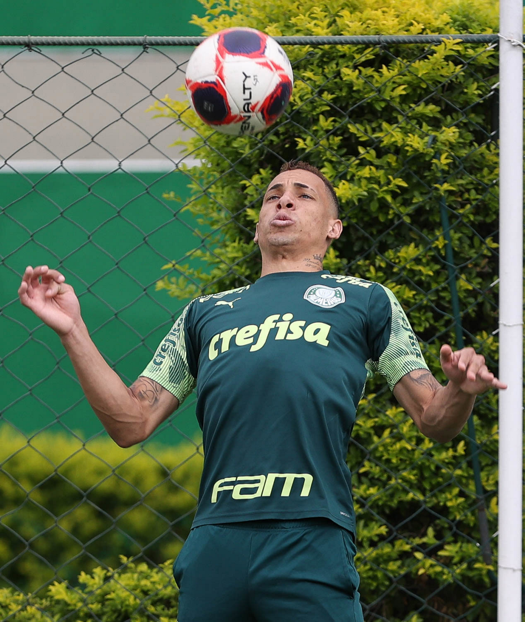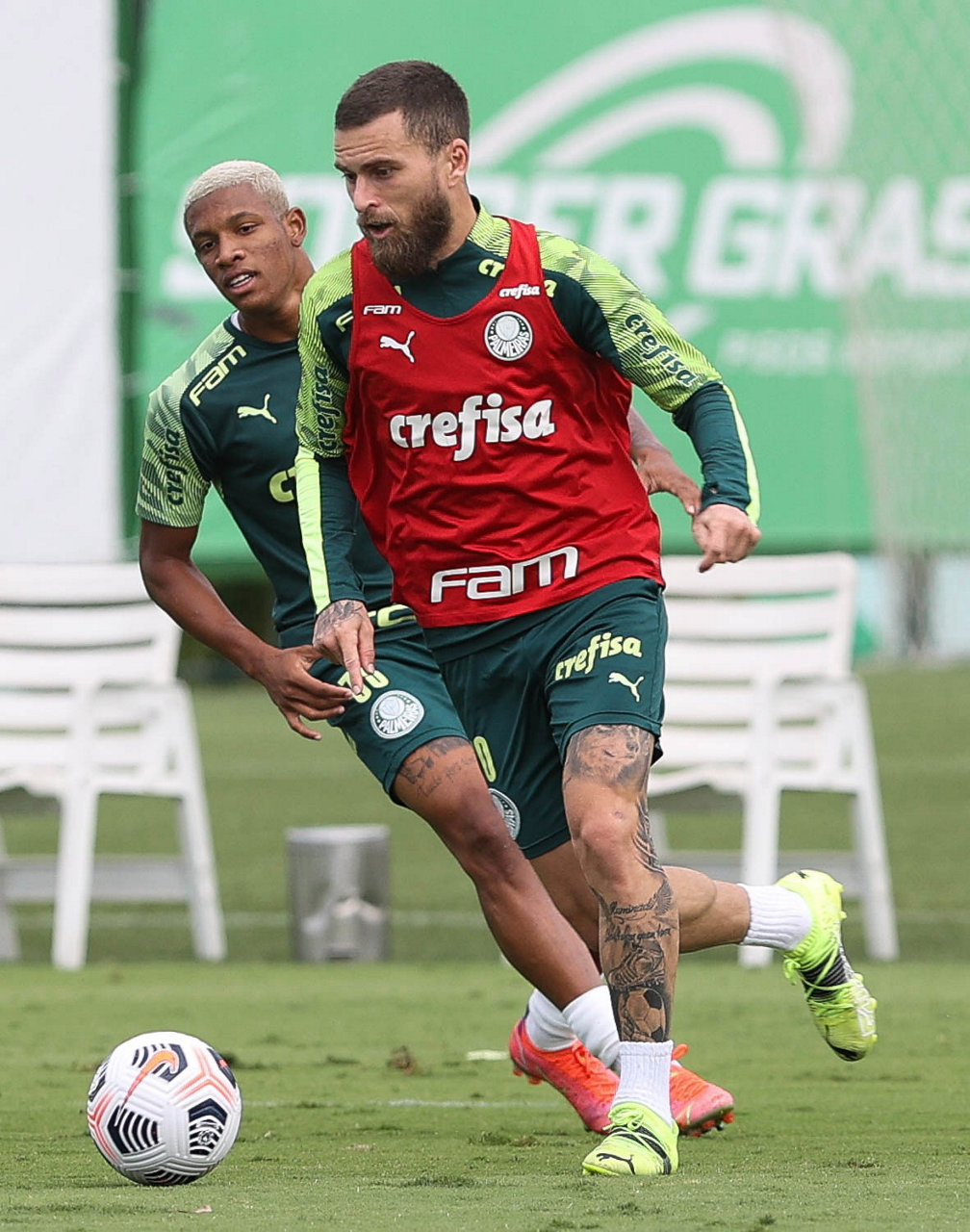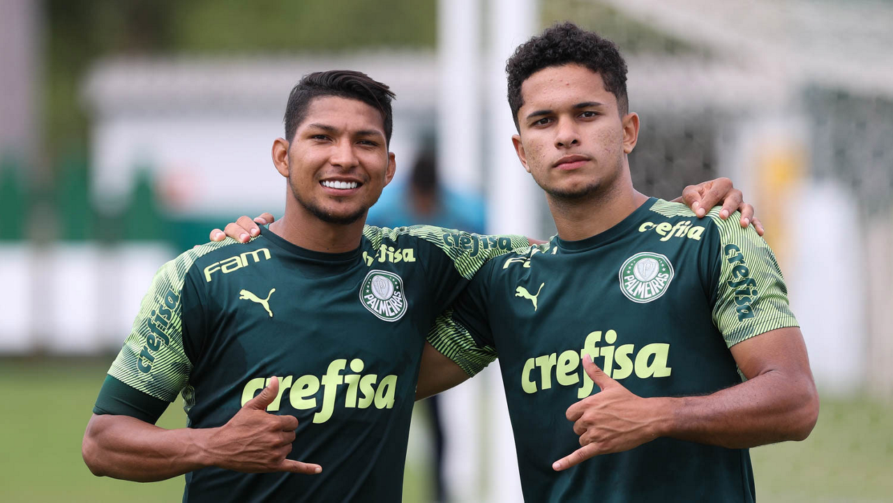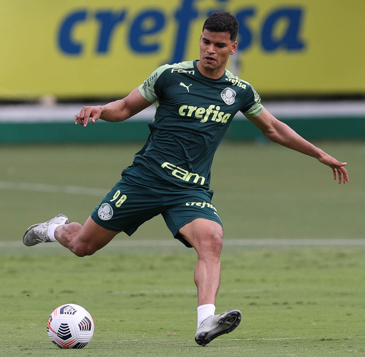 Os jogadores Raphael Veiga, Gabriel Silva, o goleiro Jailson, Gustavo Gómez, Wesley, Vanderlan, Danilo Barbosa, Fabinho e Luan (E/D em pé) e Rafael Elias, Danilo, Lucas Esteves, Garcia e Rony (E/D agachados), da SE Palmeiras, durante treinamento, na Academia de Futebol. (Foto: Cesar Greco)