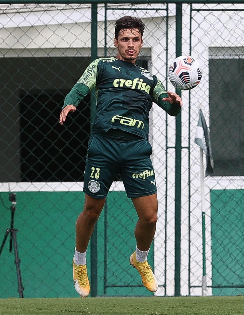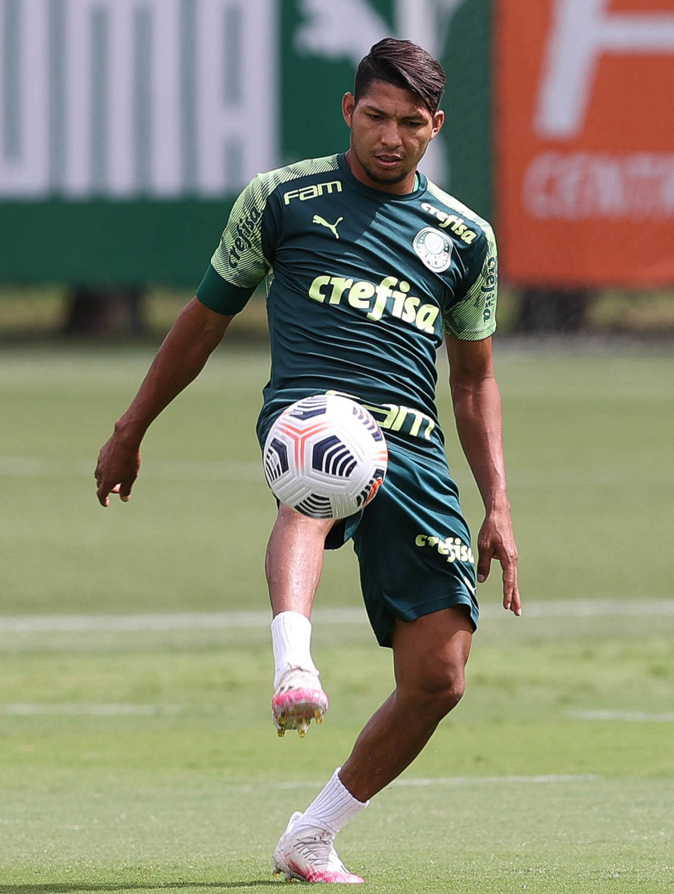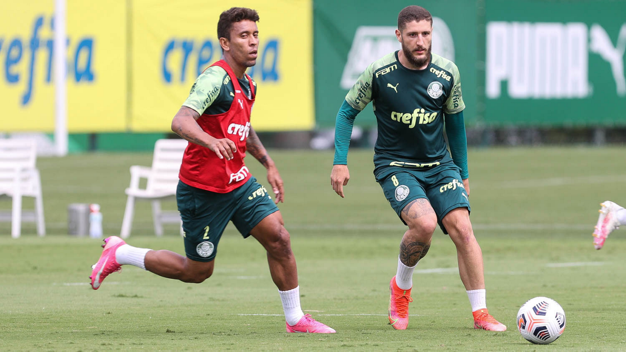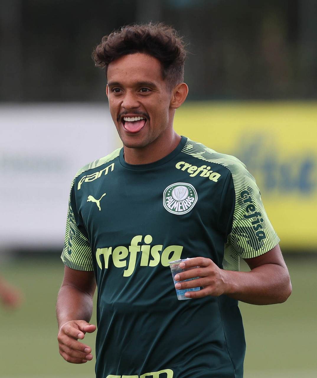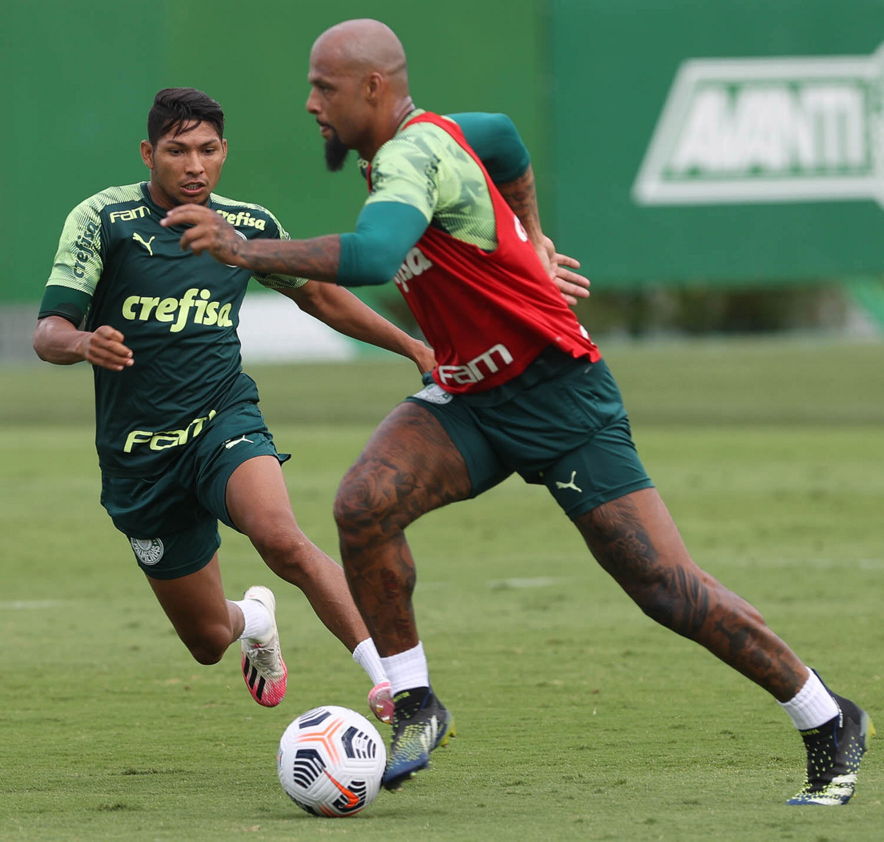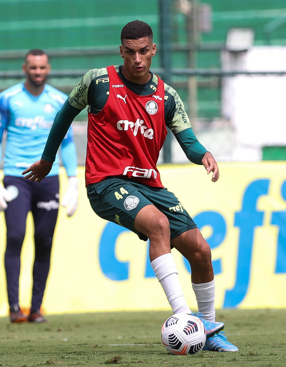 Os jogadores Raphael Veiga, Gabriel Silva, o goleiro Jailson, Gustavo Gómez, Wesley, Vanderlan, Danilo Barbosa, Fabinho e Luan (E/D em pé) e Rafael Elias, Danilo, Lucas Esteves, Garcia e Rony (E/D agachados), da SE Palmeiras, durante treinamento, na Academia de Futebol. (Foto: Cesar Greco)