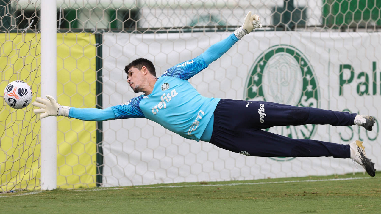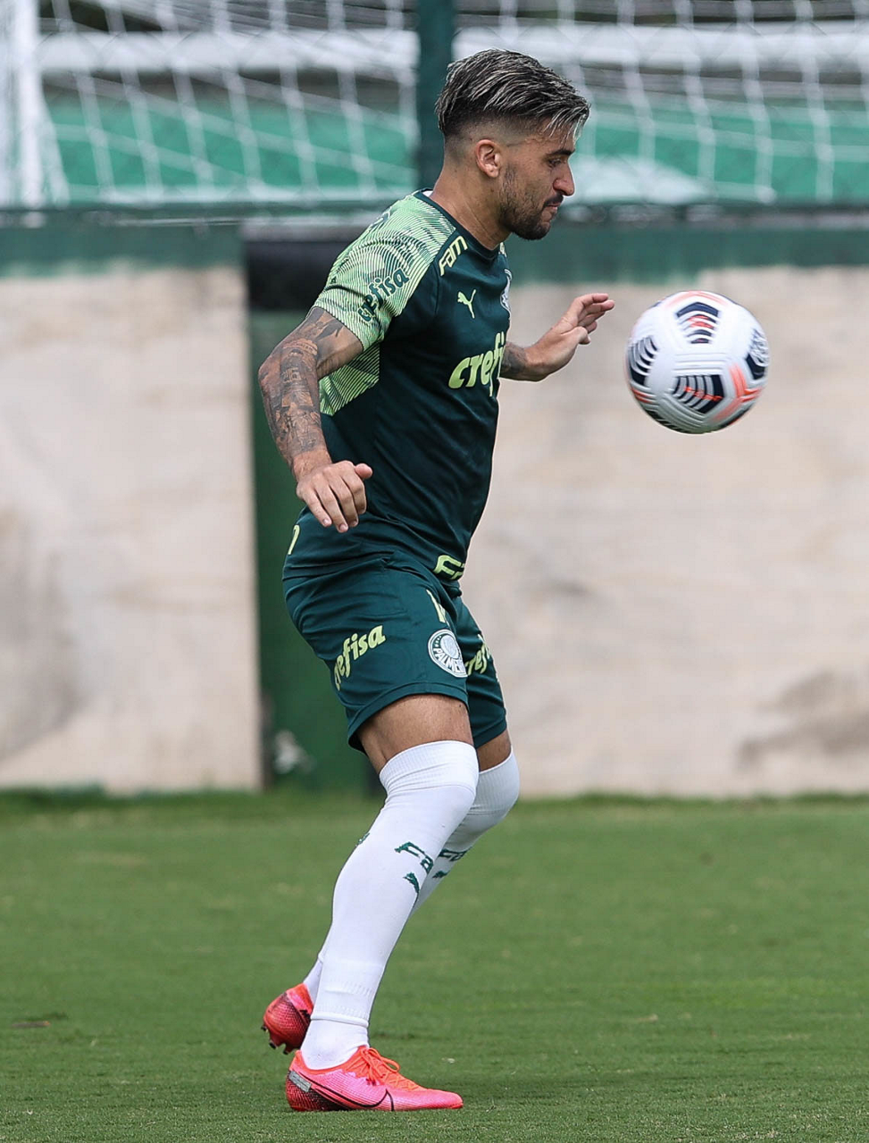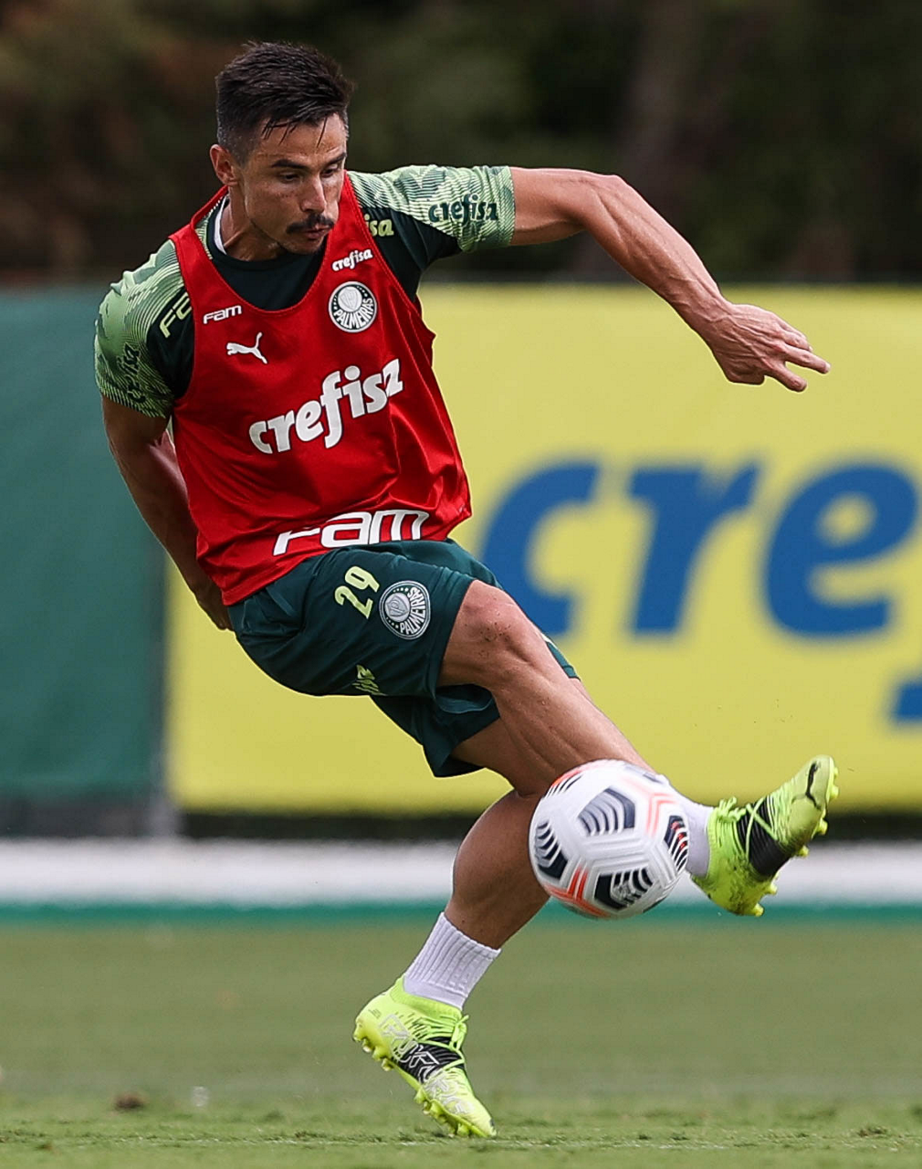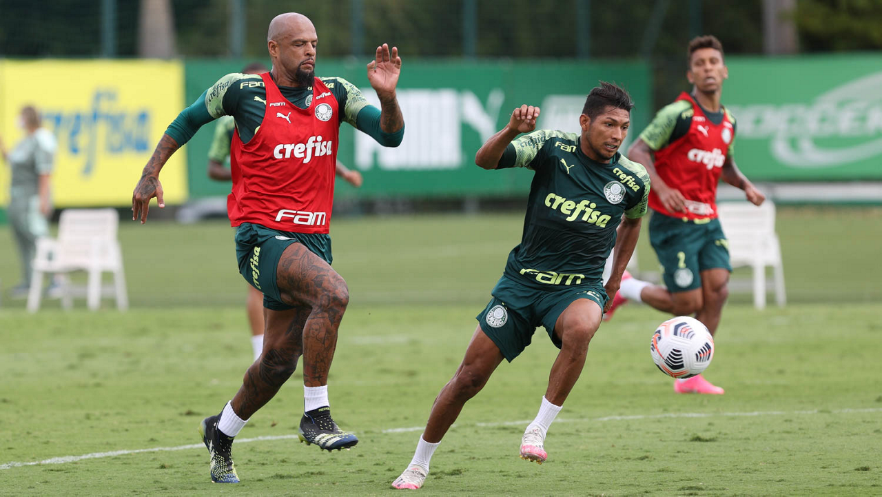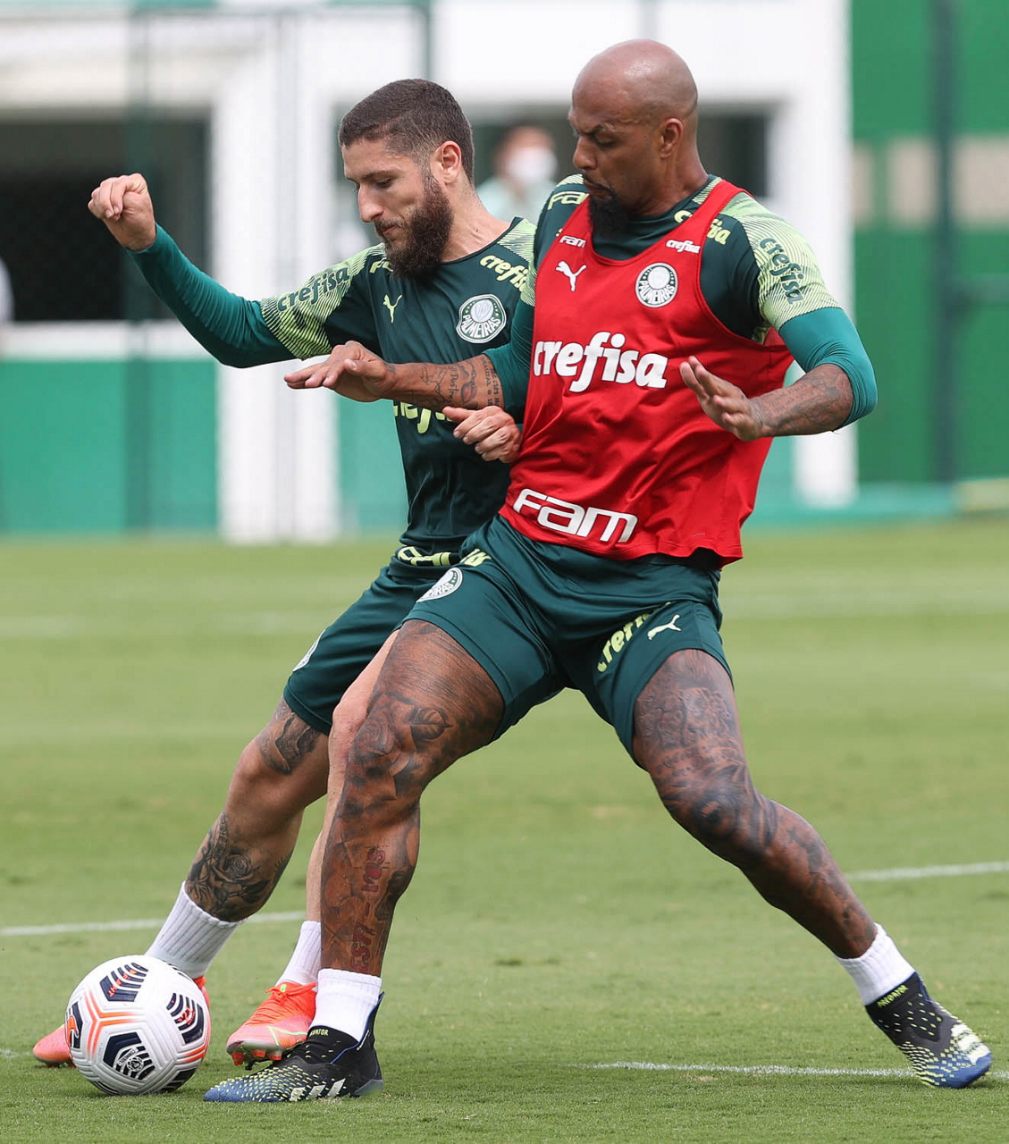 Os jogadores Raphael Veiga, Gabriel Silva, o goleiro Jailson, Gustavo Gómez, Wesley, Vanderlan, Danilo Barbosa, Fabinho e Luan (E/D em pé) e Rafael Elias, Danilo, Lucas Esteves, Garcia e Rony (E/D agachados), da SE Palmeiras, durante treinamento, na Academia de Futebol. (Foto: Cesar Greco)