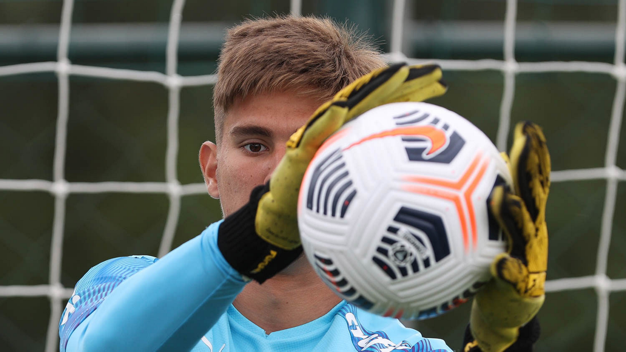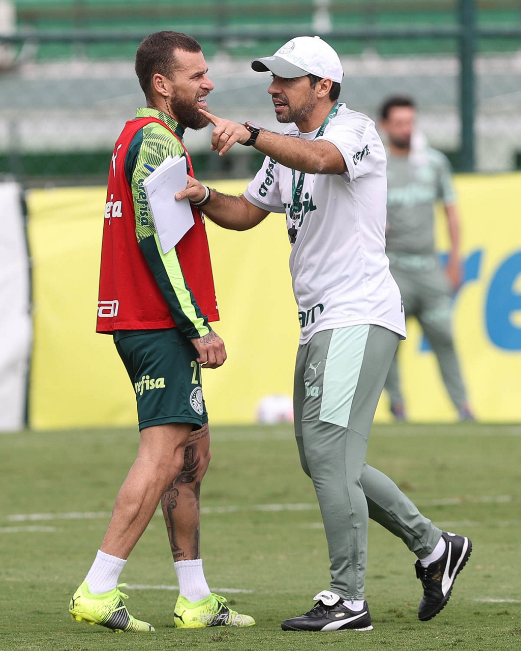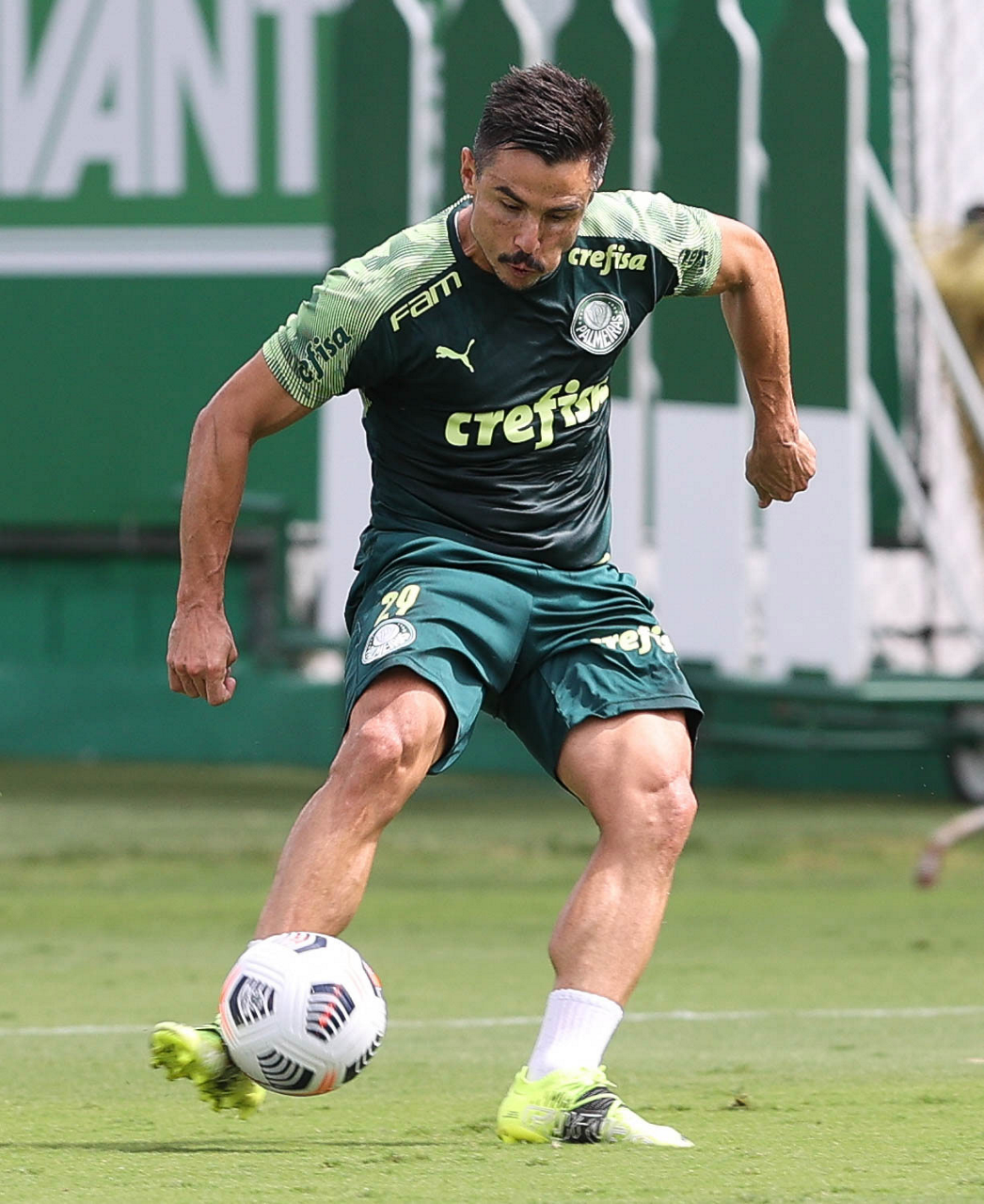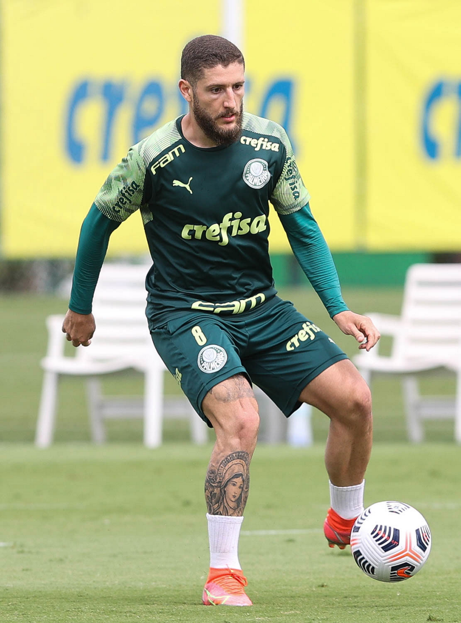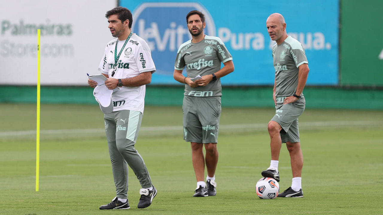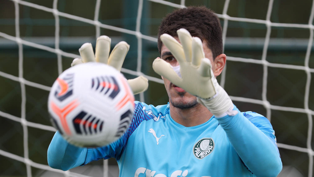 Os jogadores Raphael Veiga, Gabriel Silva, o goleiro Jailson, Gustavo Gómez, Wesley, Vanderlan, Danilo Barbosa, Fabinho e Luan (E/D em pé) e Rafael Elias, Danilo, Lucas Esteves, Garcia e Rony (E/D agachados), da SE Palmeiras, durante treinamento, na Academia de Futebol. (Foto: Cesar Greco)