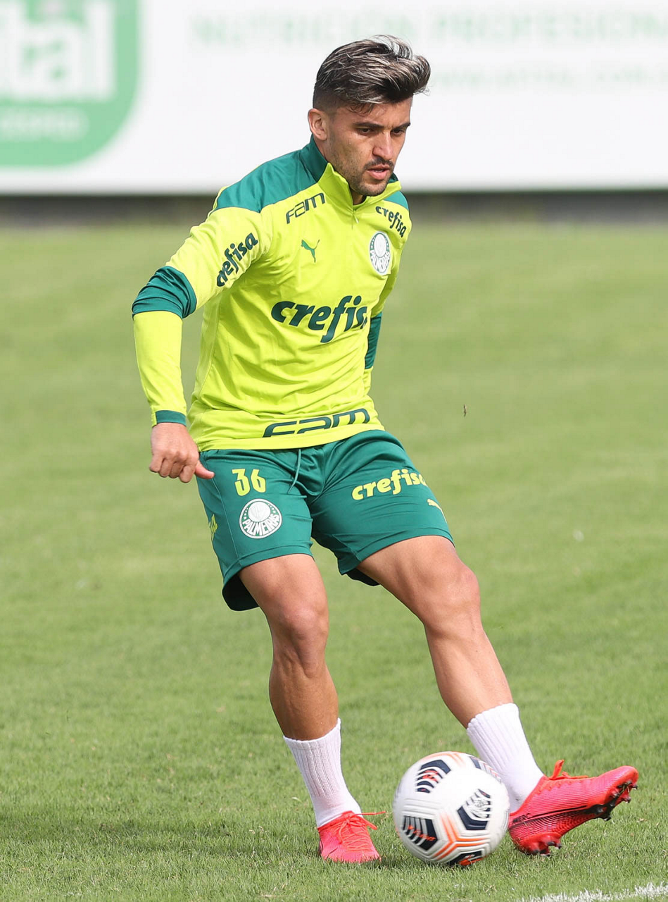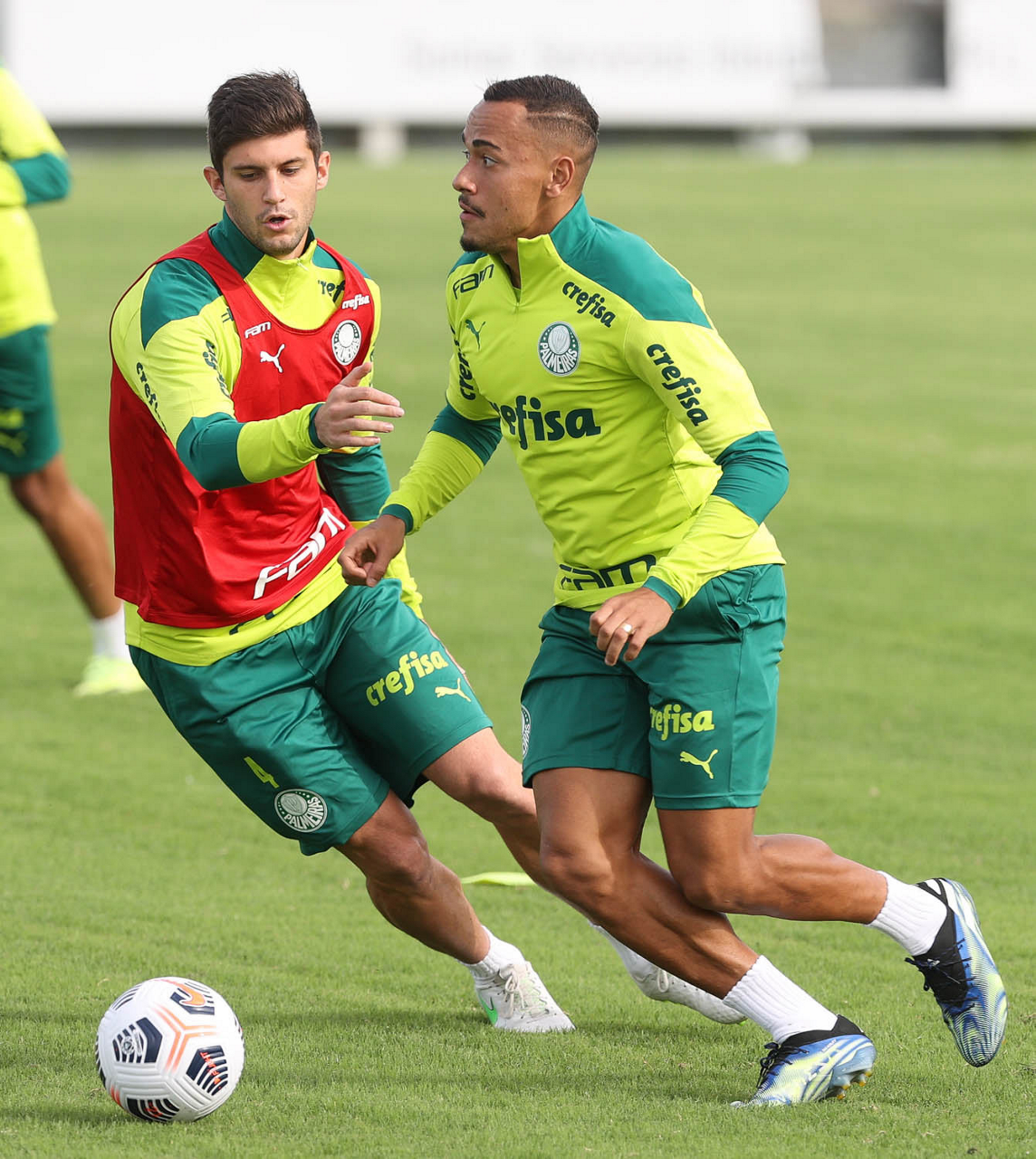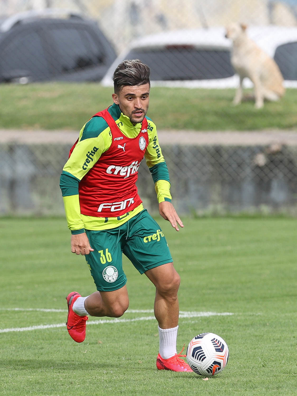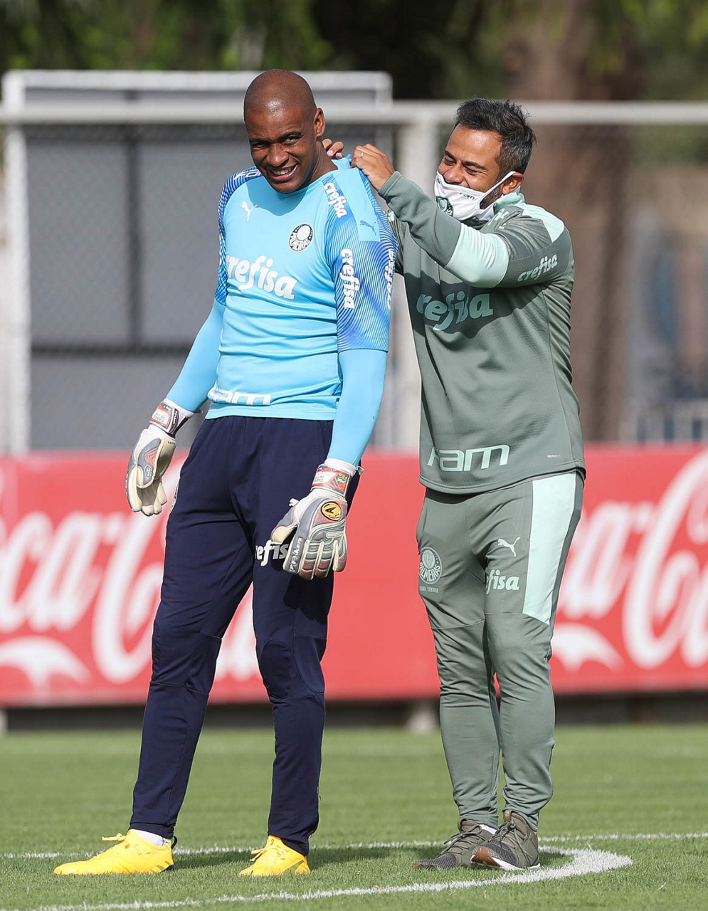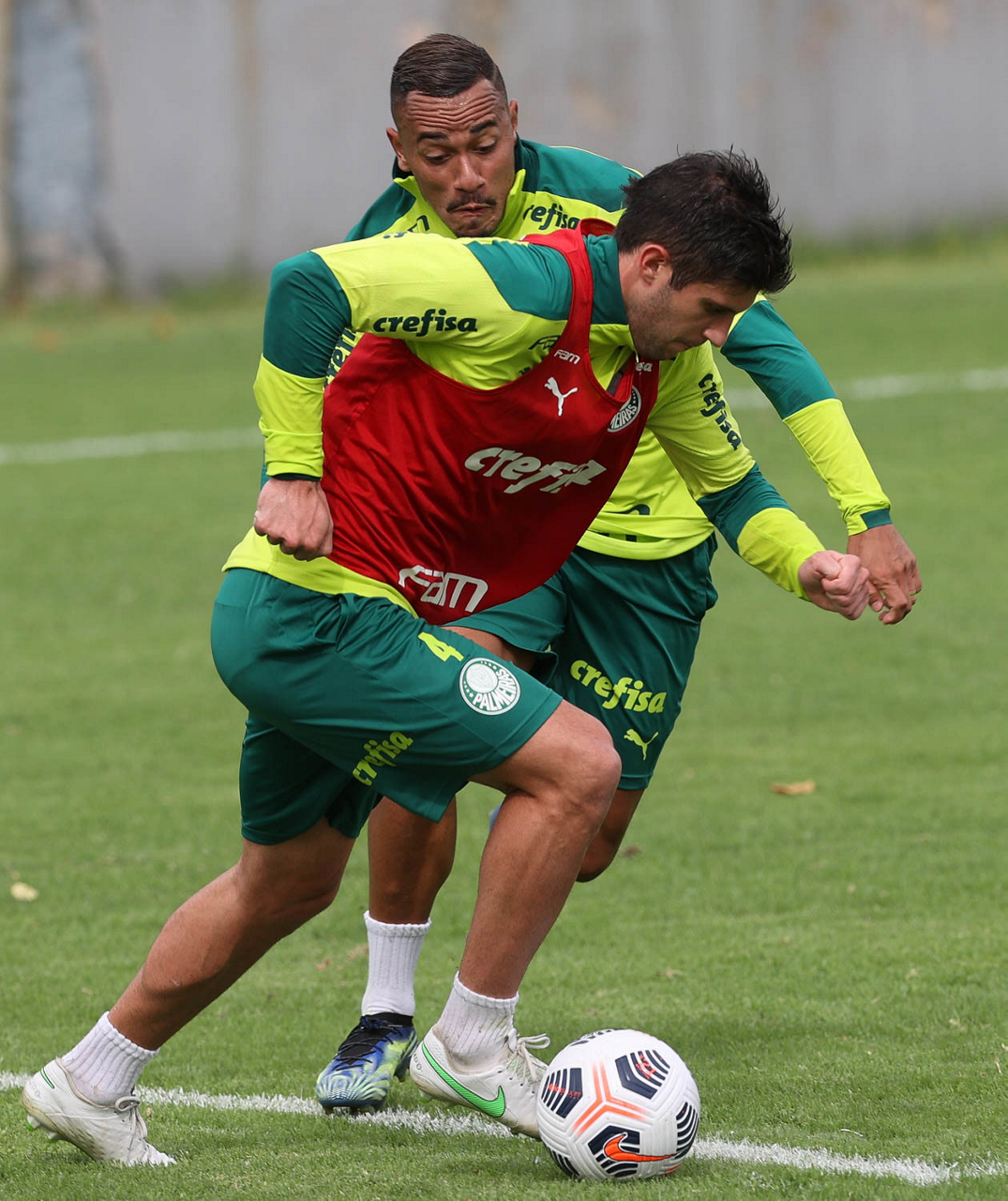 O assessor de imprensa Daniel Romeu, o roupeiro Benildo Meldrado, o médico Pedro Pontin, o coordenador científico Daniel Gonçalves e o massagista Paulinho E/D), da SE Palmeiras, durante treinamento, no CT do San Lorenzo, em Buenos Aires. (Foto: Cesar Greco)