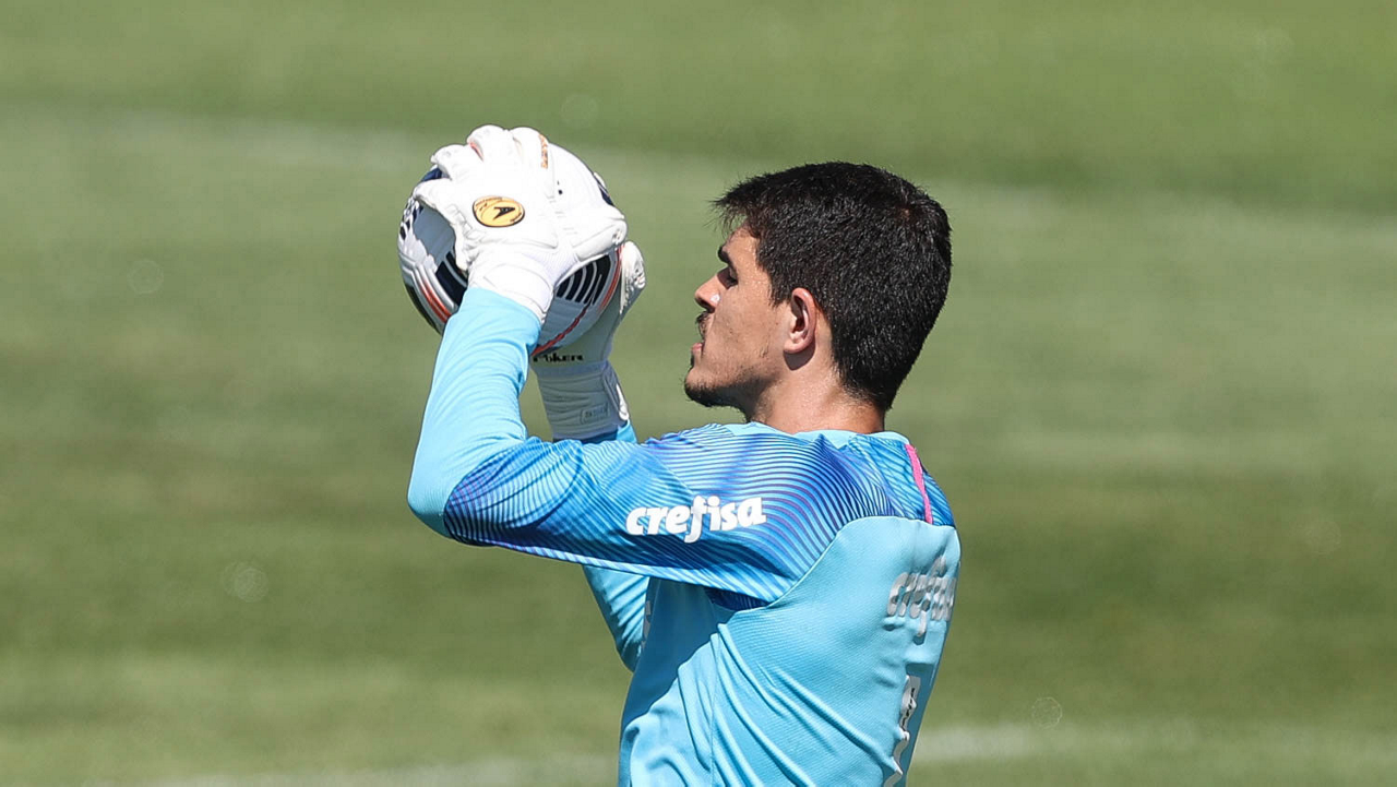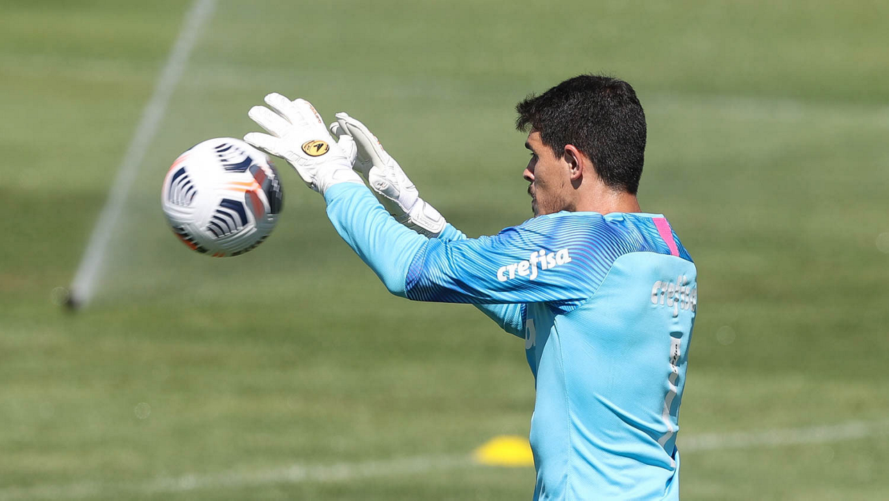 O goleiro Vinicius, da SE Palmeiras, durante treinamento, no CT do Brasiliense. (Foto: Cesar Greco)