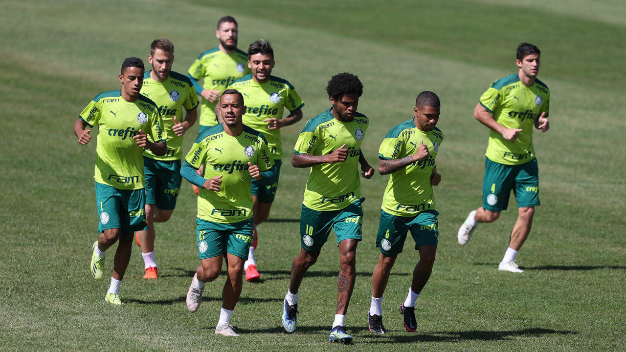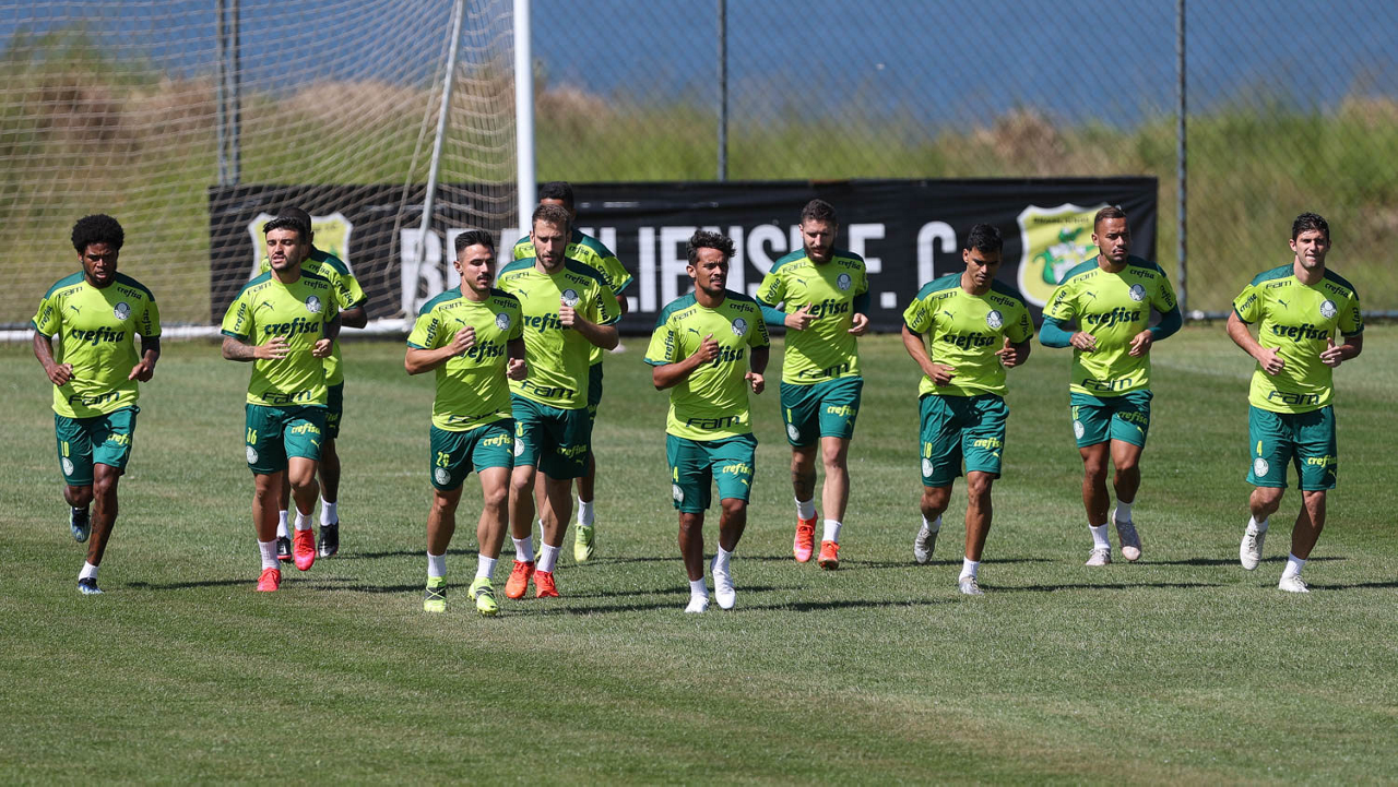 Os jogadores da SE Palmeiras, durante treinamento, no CT do Brasiliense. (Foto: Cesar Greco)