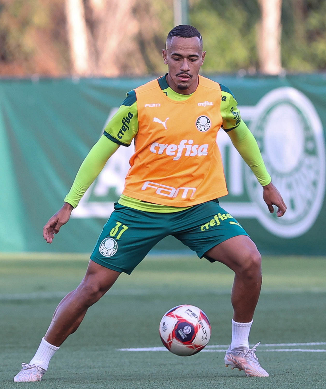 O jogador Wesley, da SE Palmeiras, durante treinamento, na Academia de Futebol. (Foto: Cesar Greco)