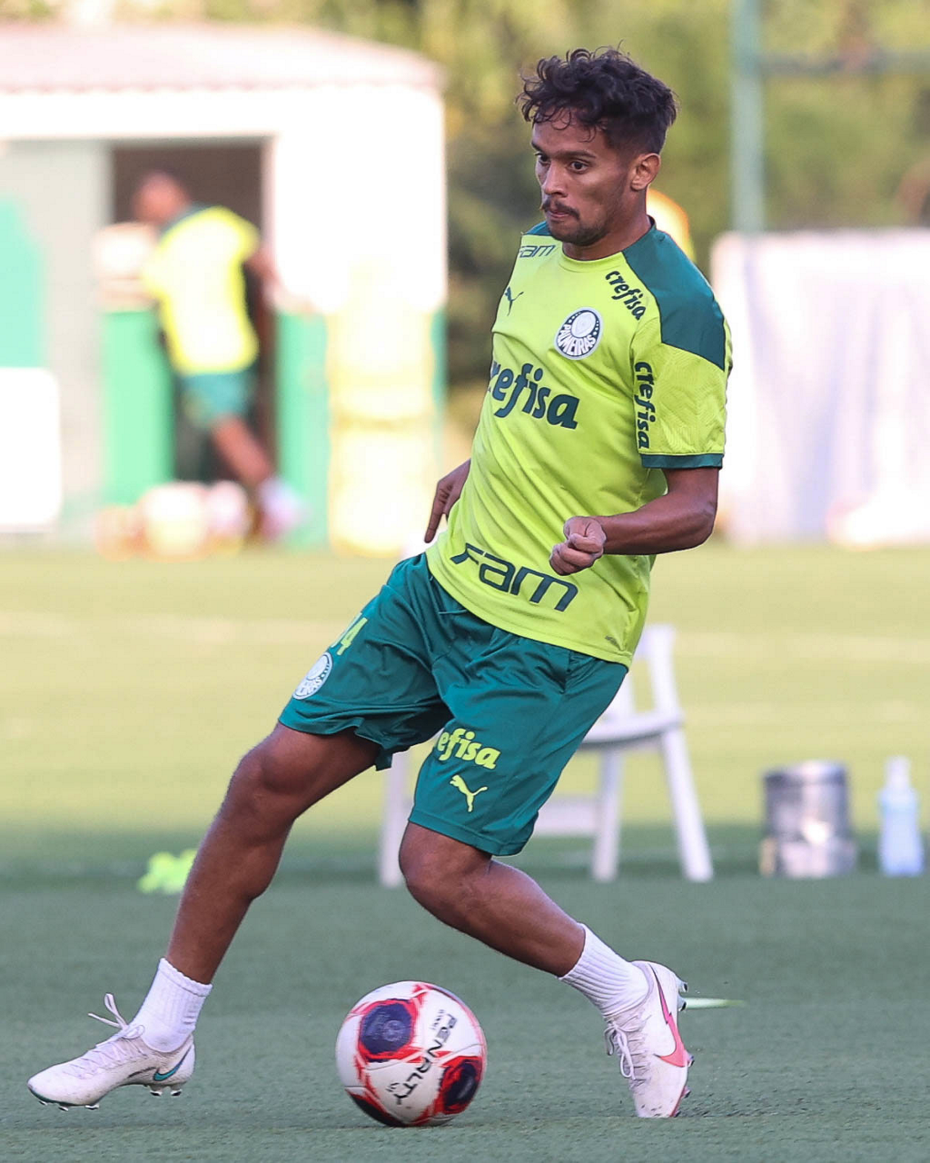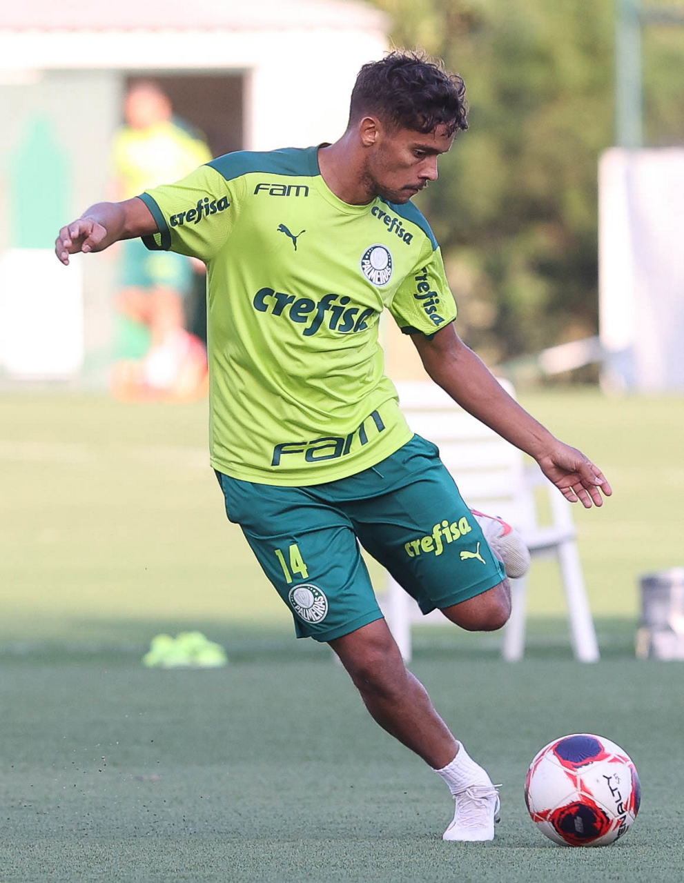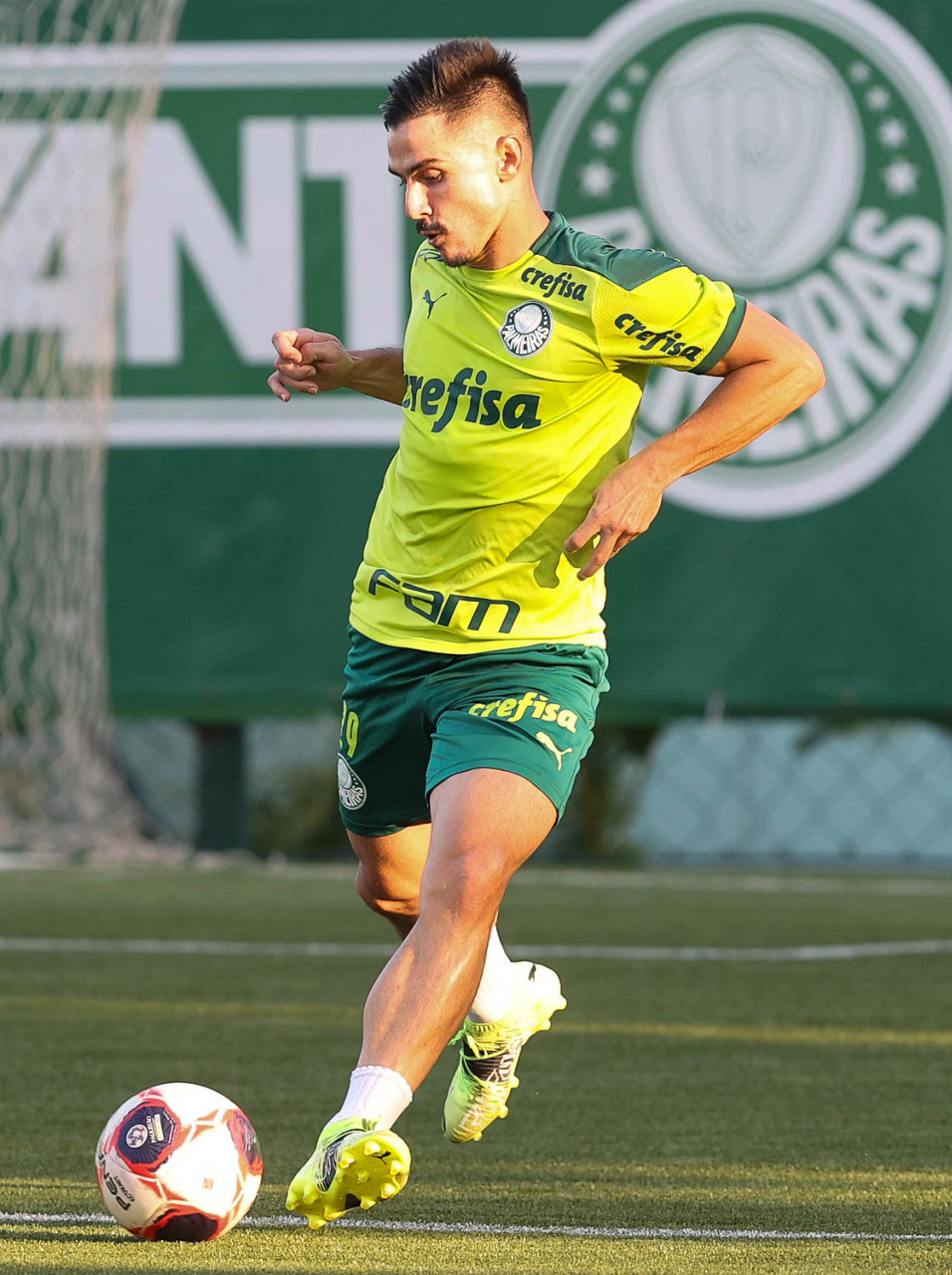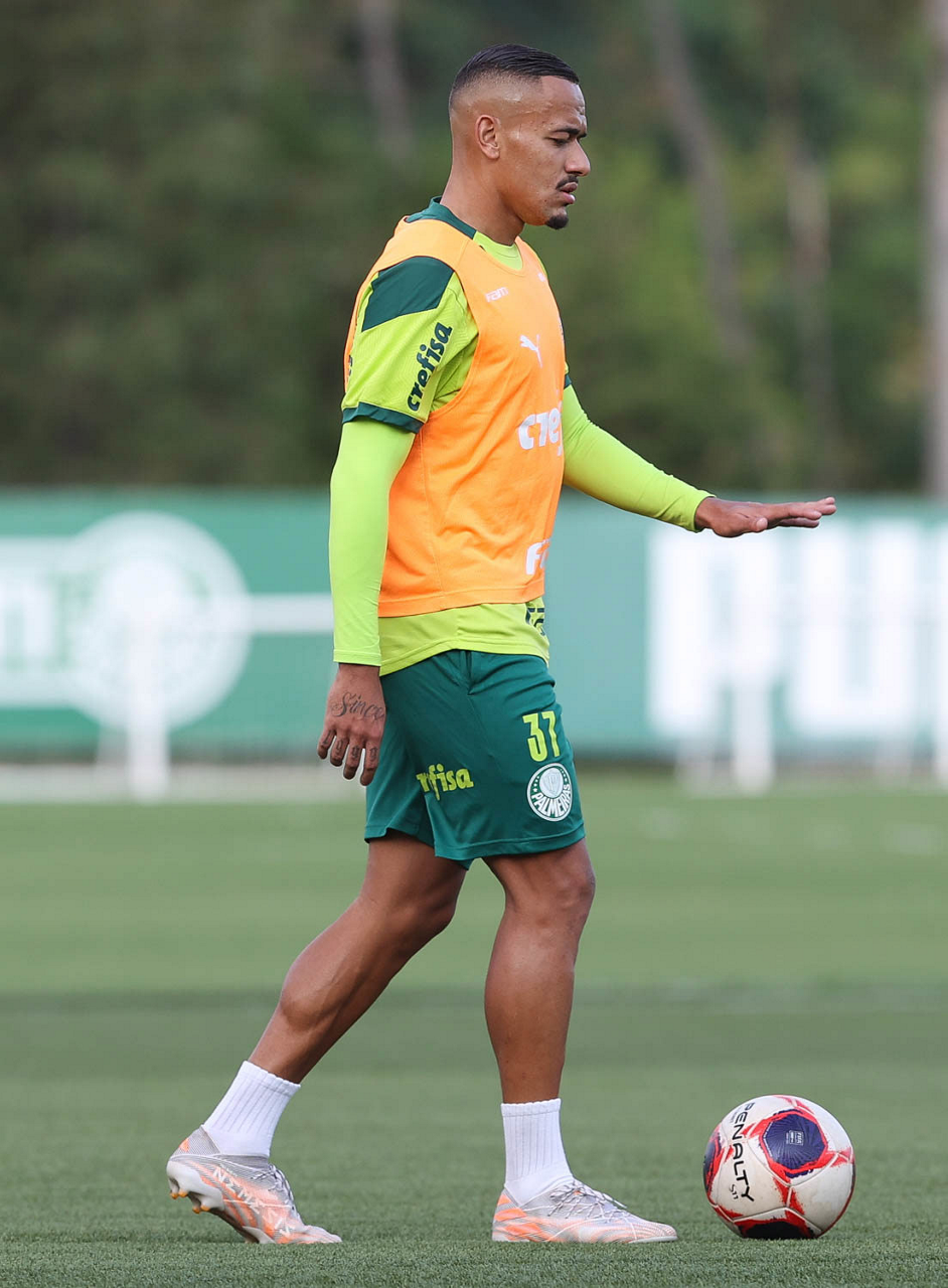 O jogador Raphael Veiga, da SE Palmeiras, durante treinamento, na Academia de Futebol. (Foto: Cesar Greco)
