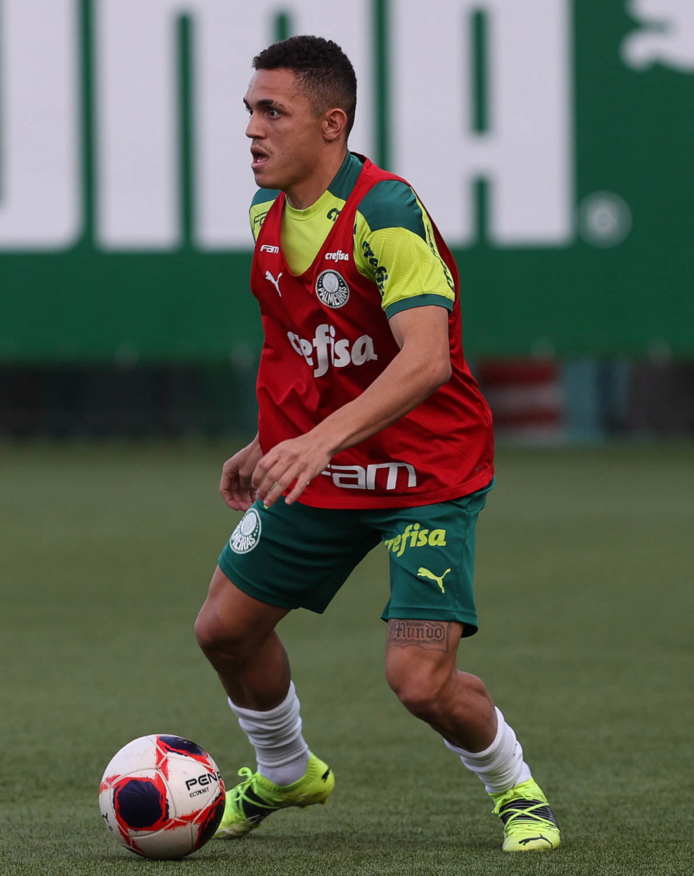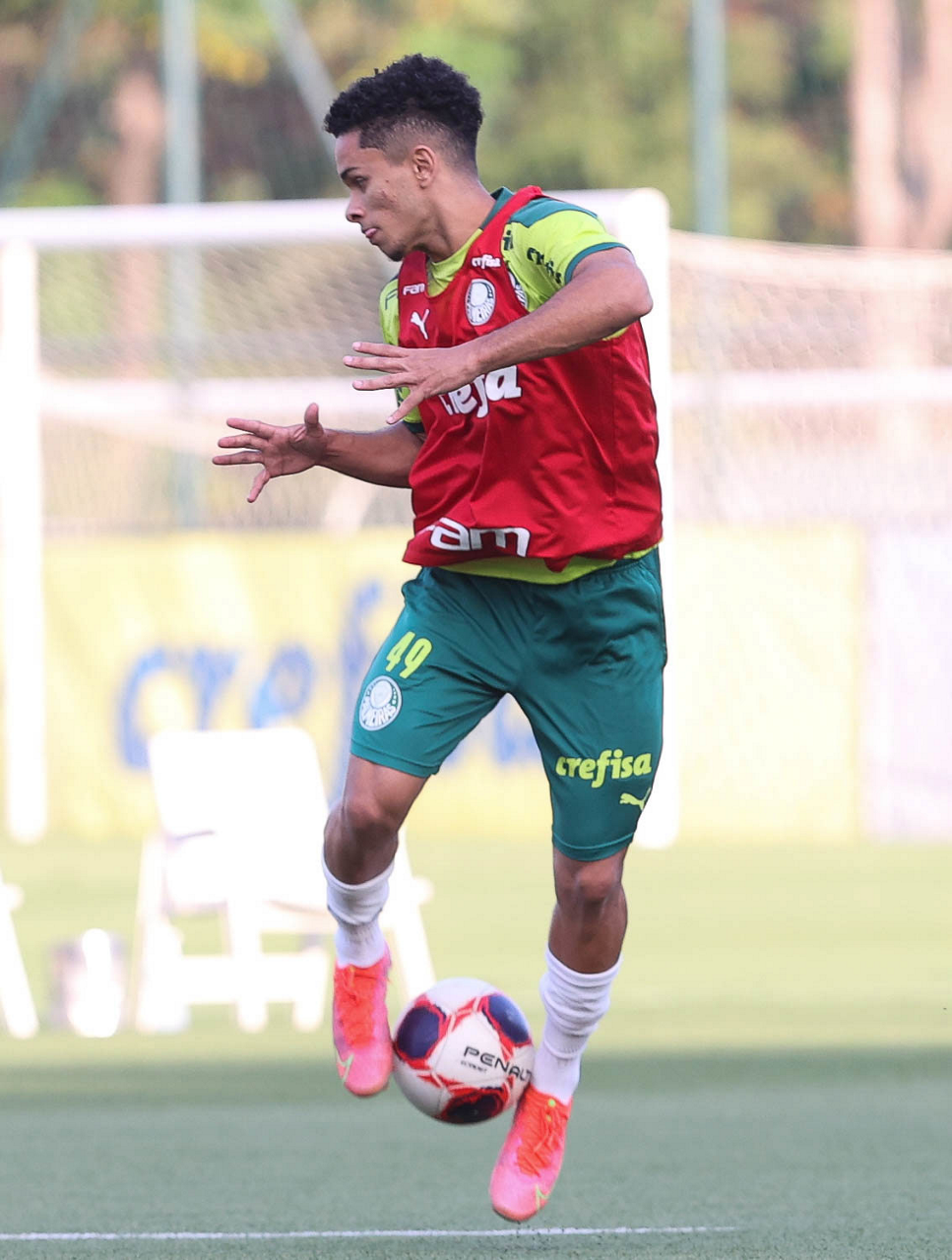 O jogador Gabriel Menino, da SE Palmeiras, durante treinamento, na Academia de Futebol. (Foto: Cesar Greco)