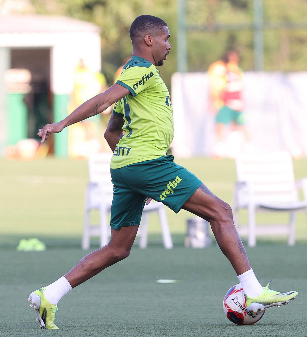 O joagdor Fabinho, da SE Palmeiras, durante treinamento, na Academia de Futebol. (Foto: Cesar Greco)