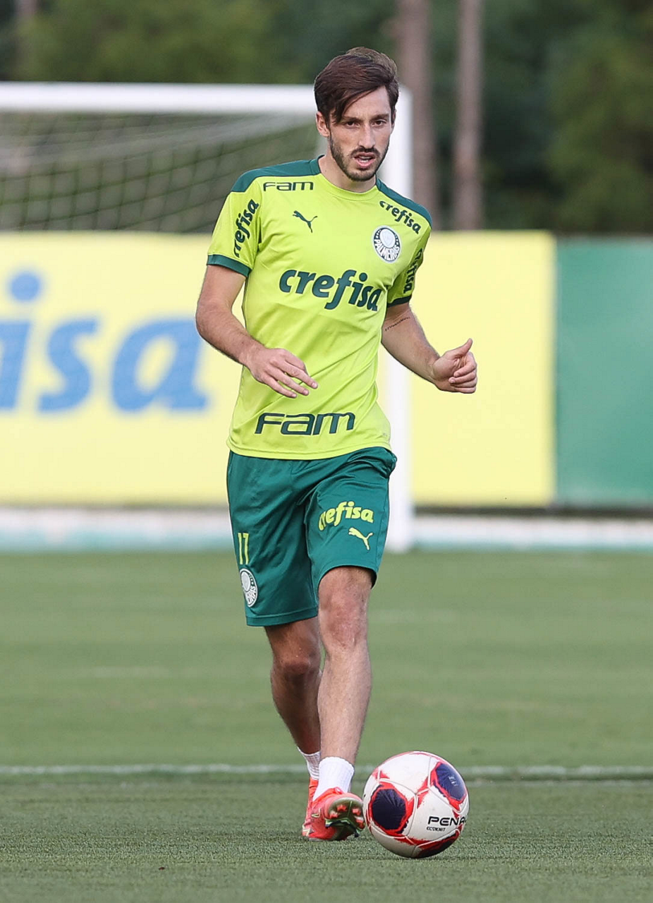 O jogador Gustavo Scarpa, da SE Palmeiras, durante treinamento, na Academia de Futebol. (Foto: Cesar Greco)