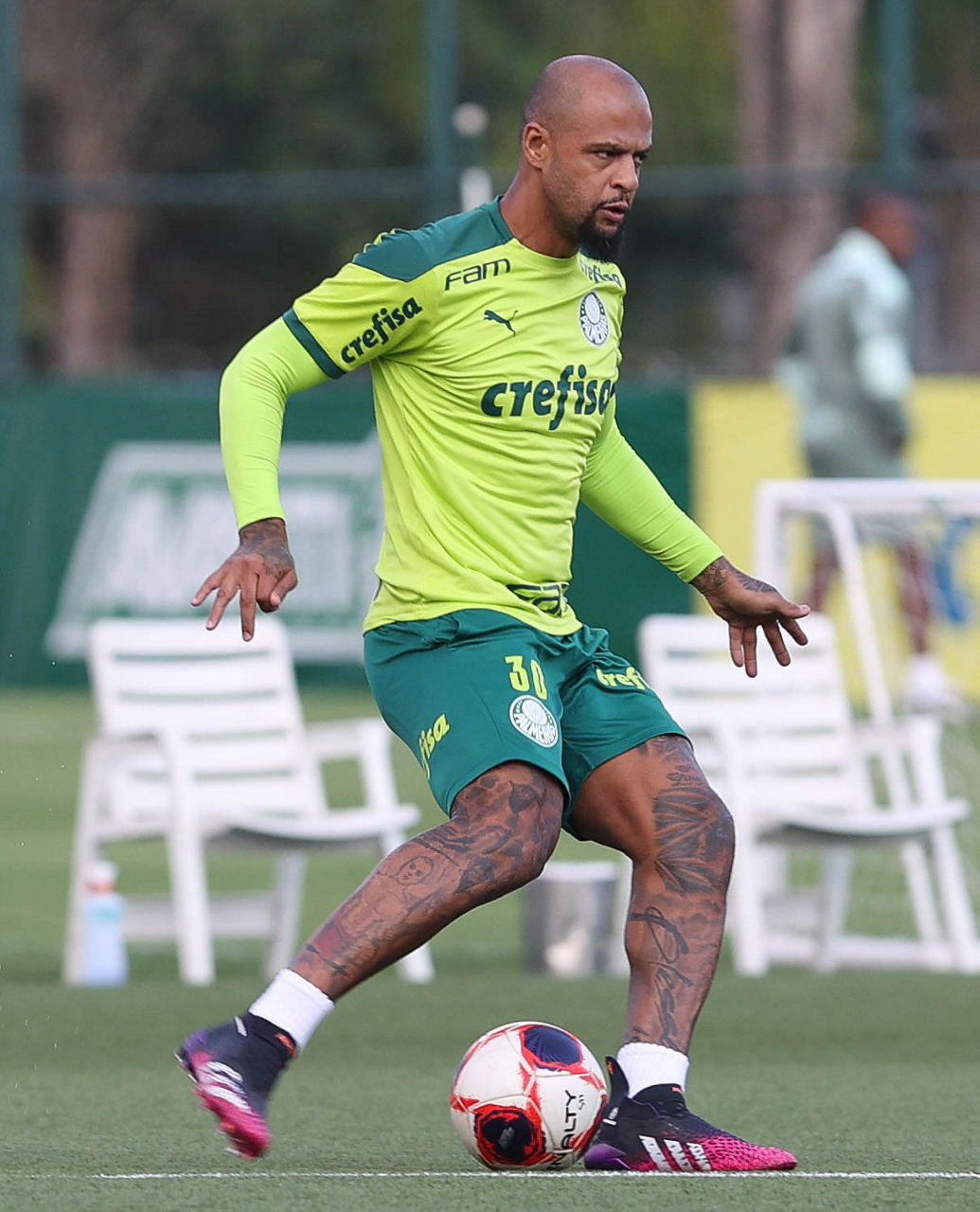 O jogador Felipe Melo, da SE Palmeiras, durante treinamento, na Academia de Futebol. (Foto: Cesar Greco)