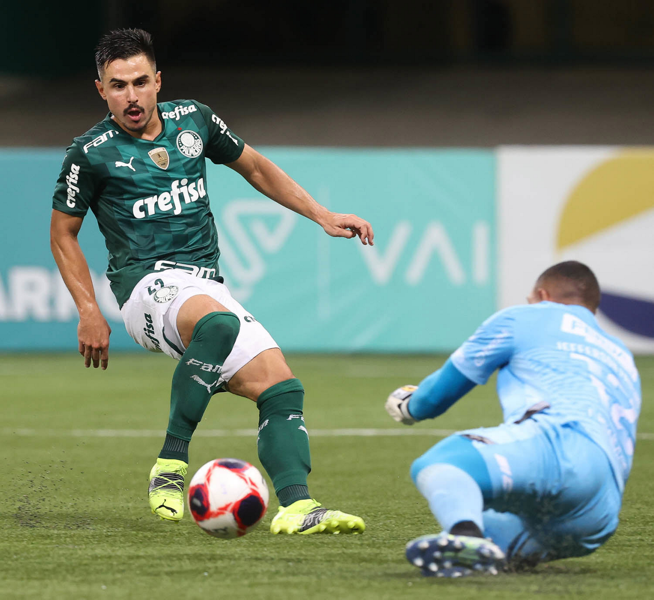 O jogador Wesley, da SE Palmeiras, em jogo contra a equipe da AA Internacional de Limeira, durante partida válida pela nona rodada, do Campeonato Paulista, Série A1, na arena Allianz Parque. (Foto: Cesar Greco)