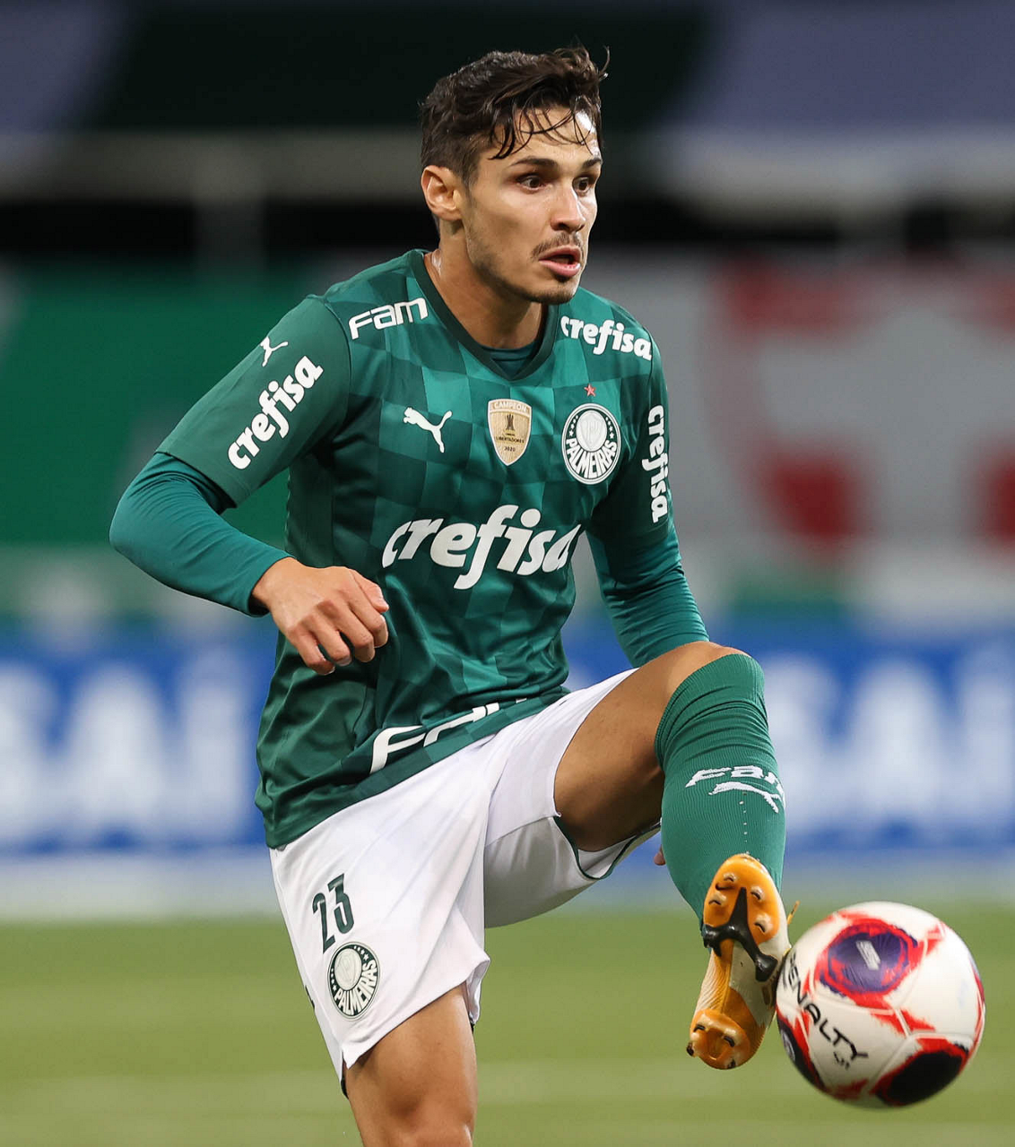 O jogador Raphael Veiga, da SE Palmeiras, em jogo contra a equipe da AA Internacional de Limeira, durante partida válida pela nona rodada, do Campeonato Paulista, Série A1, na arena Allianz Parque. (Foto: Cesar Greco)