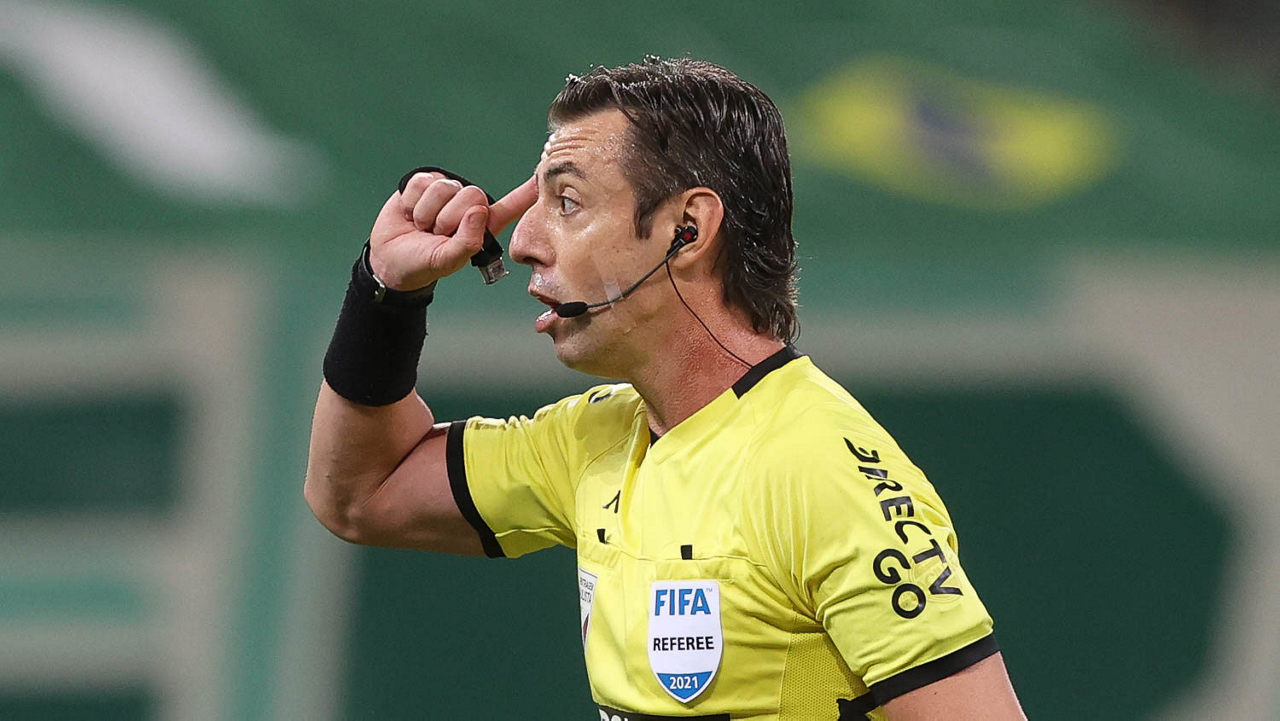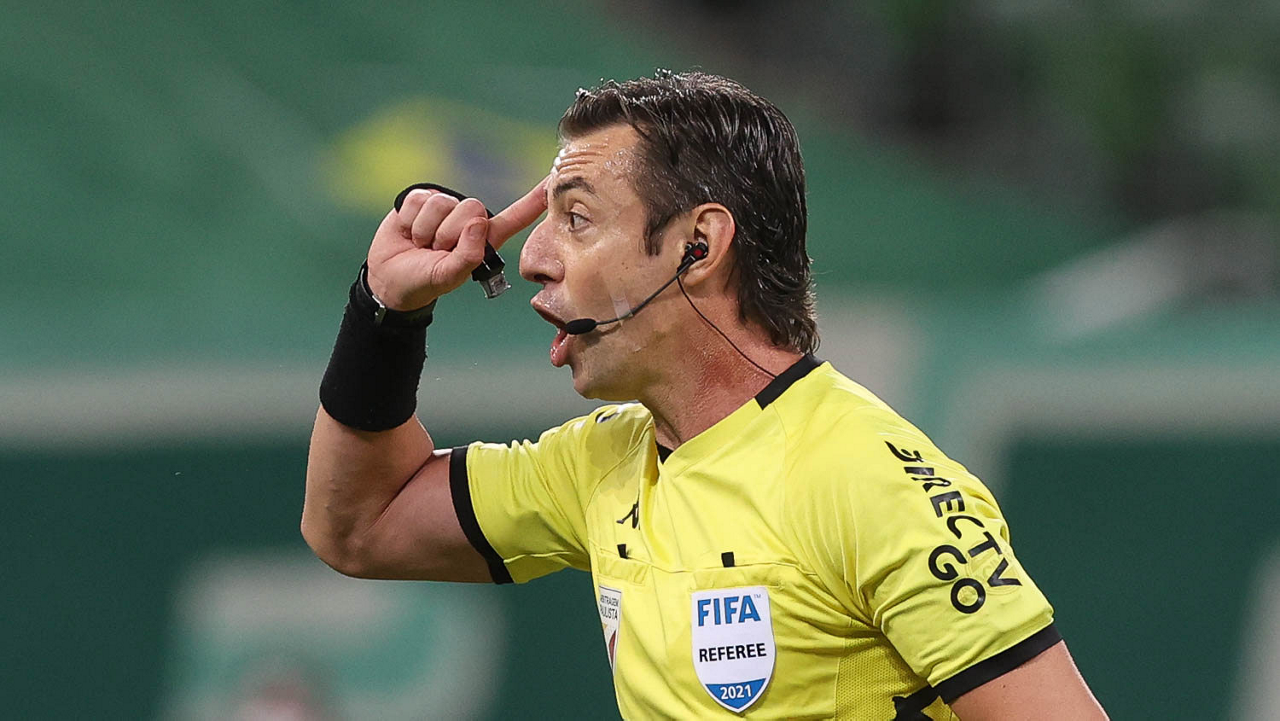 O árbitro Raphael Claus, do jogo entre as equipes da SE Palmeiras e AA Internacional de Limeira, durante partida válida pela nona rodada, do Campeonato Paulista, Série A1, na arena Allianz Parque. (Foto: Cesar Greco)