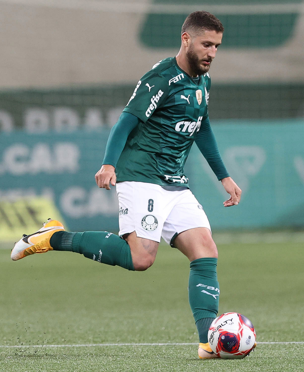 O jogador Gustavo Scarpa, da SE Palmeiras, em jogo contra a equipe da AA Internacional de Limeira, durante partida válida pela nona rodada, do Campeonato Paulista, Série A1, na arena Allianz Parque. (Foto: Cesar Greco)