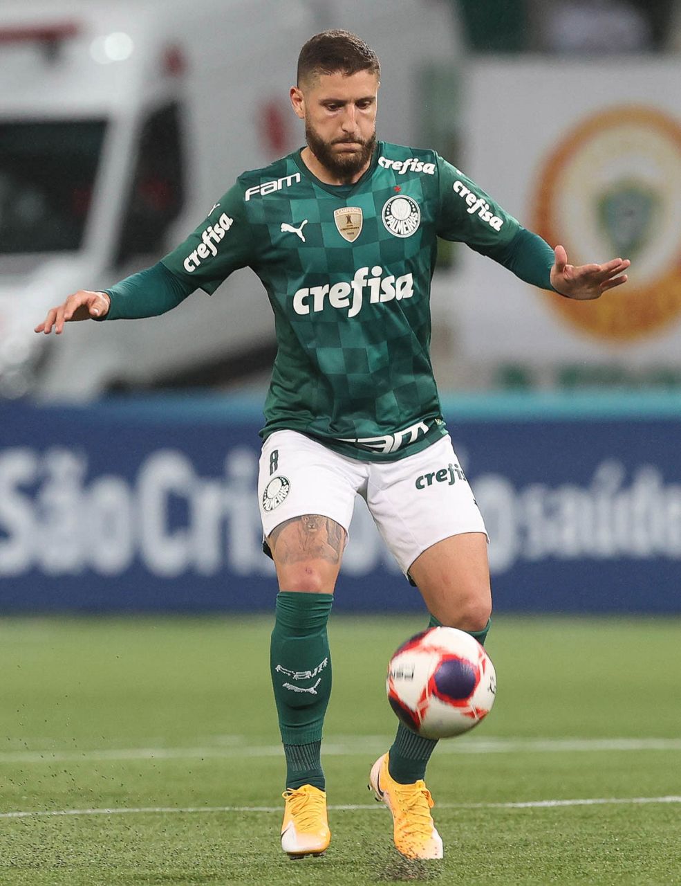 O jogador Matías Viña, da SE Palmeiras, em jogo contra a equipe da AA Internacional de Limeira, durante partida válida pela nona rodada, do Campeonato Paulista, Série A1, na arena Allianz Parque. (Foto: Cesar Greco)