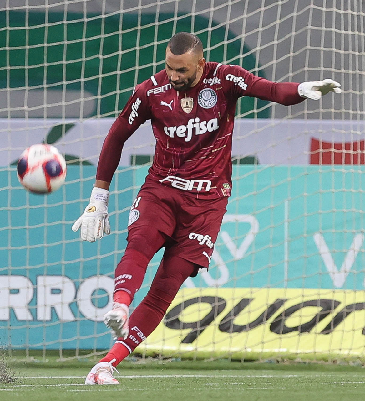 O goleiro Weverton, da SE Palmeiras, em jogo contra a equipe da AA Internacional de Limeira, durante partida válida pela nona rodada, do Campeonato Paulista, Série A1, na arena Allianz Parque. (Foto: Cesar Greco)