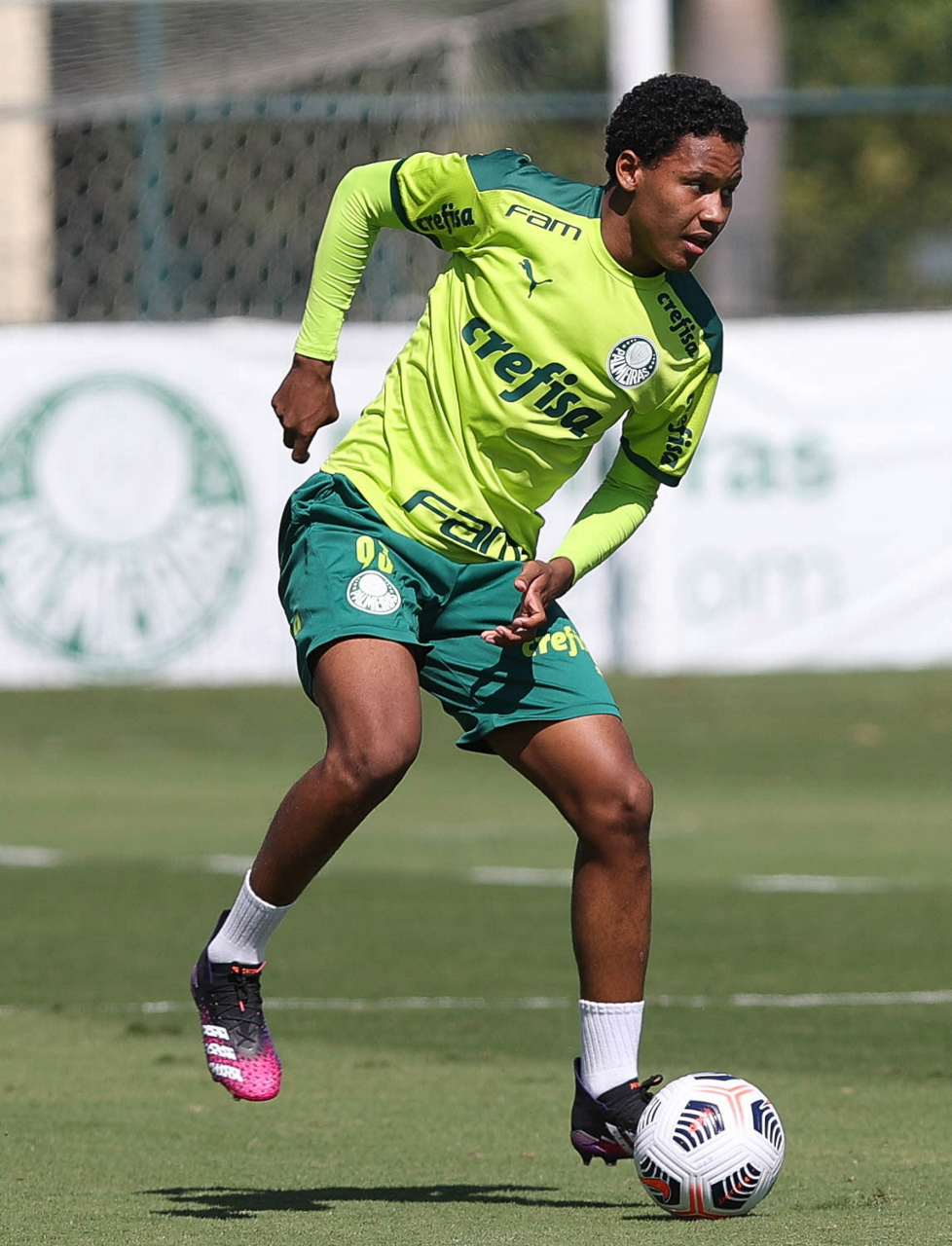 O jogador Jhow, da SE Palmeiras, durante treinamento, na Academia de Futebol. (Foto: Cesar Greco)